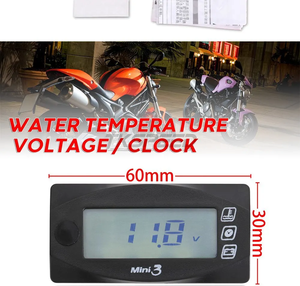 Универсальный мотоциклетный Многофункциональный измерительный прибор мини 3 цифровой термометр температуры воздуха время вольтметр измеритель воды