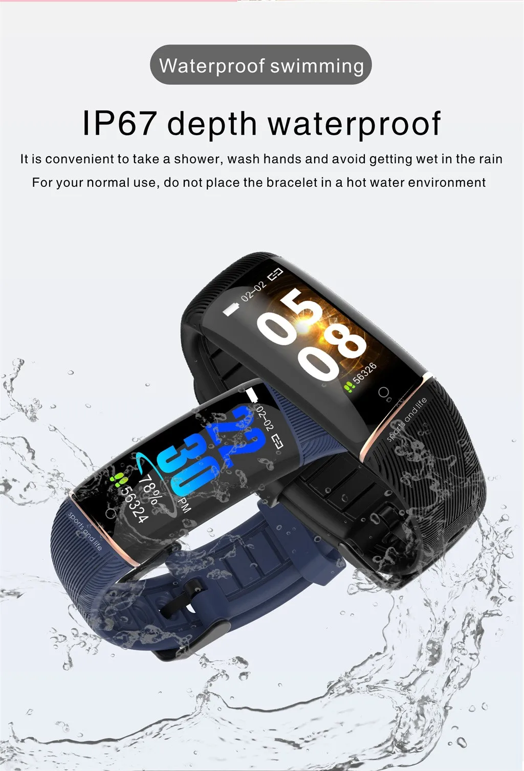 Спортивный смарт-браслет E98, фитнес-трекер с пульсометром, водонепроницаемый смарт-браслет