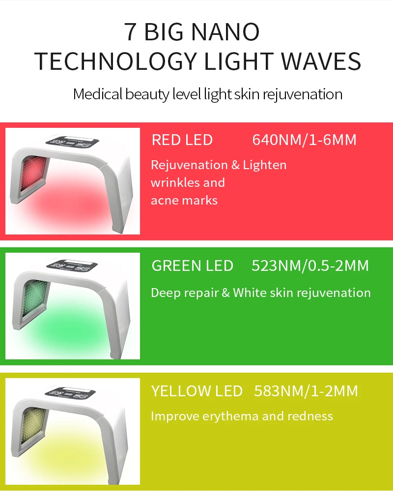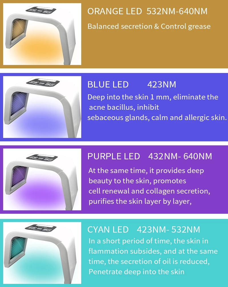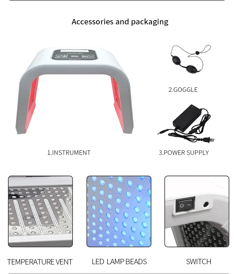-Инновационная технология-натуральная косметическая машина использует светодиодный светильник, чтобы ускорить циркуляцию кожи для омолаживания, без побочного эффекта, здоровой и безопасной. Совмещает светодиодный светильник 4 цветов, который имеет различную длину волны, чтобы решить проблему кожи, помогая вернуть молодой вид -Идеальный эффект-может эффективно уменьшать морщины и отеки, сокращать поры, улучшать жирную кожу, улучшать и подтягивать кожу, в результате достижения белой, нежной, упругой и молодой кожи. Этот короткий массаж прост в использовании, не подвержен горению, удобен и безболезнен -Идеальный дизайн-3D дизайн, используя светильник для лица, чтобы решить проблему кожи более эффективным и полным способом. Поставляется с очками для защиты ваших глаз, которые очень милые и продуманные -Многофункциональный-красный светильник: регенерация клеток кожи, восстановление рубцов, облегчение боли, отбеливание кожи, Повышение эластичности кожи. Синий светильник: устранение пигментных осадков, ингибирование сальных желез, разглаживание аллергической кожи -Многофункциональный-зеленый светильник: функция баланса кожи, уменьшение возбуждения жира, стабилизация, нанесение чувствительной кожи.- -Желтый светильник: улучшение покраснения лица, красное пятно, сглаживание Красного отека, устранение пигментных осадков, улучшение купероза кожи, предотвращение расширения красных кровеносных сосудов Описание товара Посылка: 1 * Основная машина 1 * очки 1 * Адаптер питания 1 * руководство на английском языке