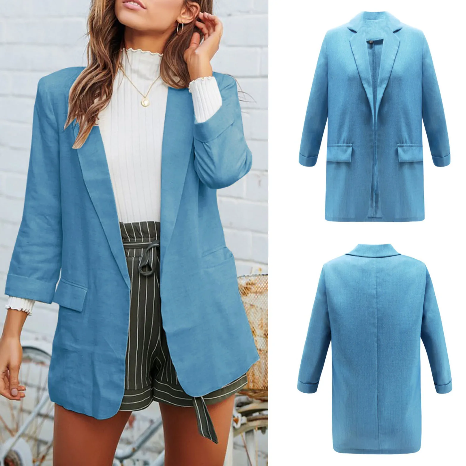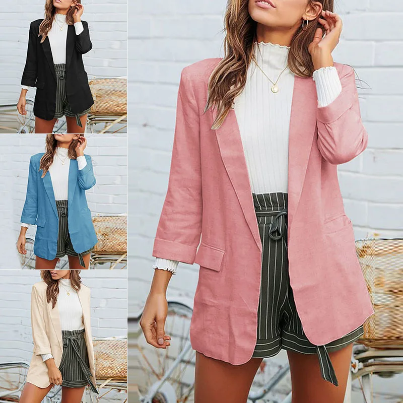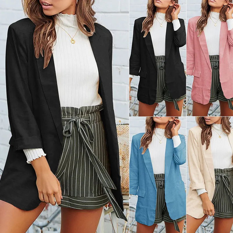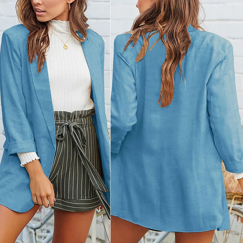 * Описание товара:Женское повседневное Свободное пальто 3/4 рукав Блейзер костюм куртка верхняя одежда кардиган отложной воротник плюс размер