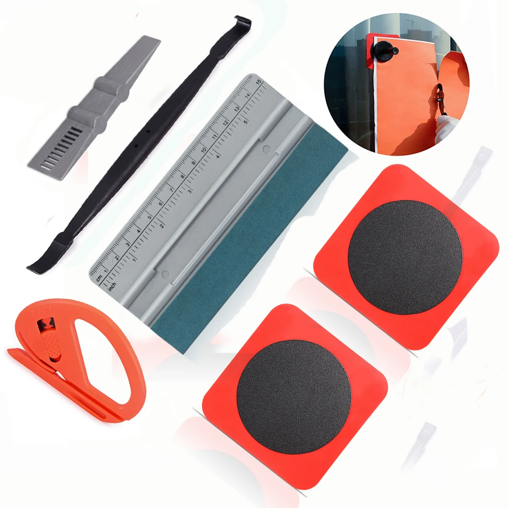 Характеристика: 1. Прочный ракель из высококачественной нержавеющей стали/резины/пластика 2. Снимайте пузырьки прямо под пленкой, предотвращая появление стеклянного кузова автомобиля и пленки 3. Не царапается, не оставляет следов или следов, просто гладкие движения, которые легко скользят по виниловым пленкам и окрашенной поверхности 4. Удобно для обертывания: жесткая связь между стеклом/автомобилем/стеной/окном/дверью гладкая поверхность и магнит. 5. Он состоит из силиконового листа и металлической накладки. Силиконовая пленка обладает определенной адсорбционной силой, которая может быть адсорбирована на поверхности гладких предметов и без дополнительного клея или царапин на гладкой поверхности. 6. Подходит для многих типов магнитных держателей. Применение: 1. Старая виниловая пленка и удаление клея, чистящая щетка для машины, инструменты для укладки 2. Наклеивание автомобильной пленки, нанесение специальной пленки на здание, установка виниловой пленки, установка тонировочной пленки для окон, установка стеновой бумаги, инструменты для Обертывания автомобилей 3. Использование бытового стекла стеклоочистителя, дома автомобиля, строительных инструментов, промышленных инструментов. 4. Установка защиты экрана мобильного телефона 5. Бумага, пленка, Наклейки режущий инструмент... В комплект входит: 1 х черный магнитный скребк 1X замшевый фетровый Ракель со шкалой (15*7,3 см) 1 х мини-серый Ракель инструмент для резки 1 х Оранжевый Мини-резак (10*5,8 см) 2 шт. х адсорбционный патч-лист (Этот продукт должен быть использован с магнитами.)