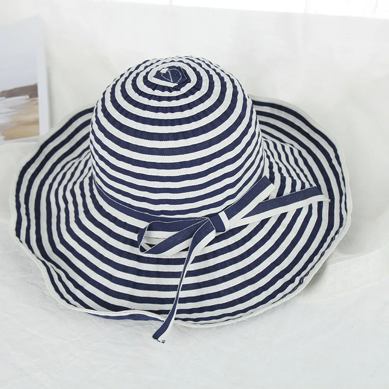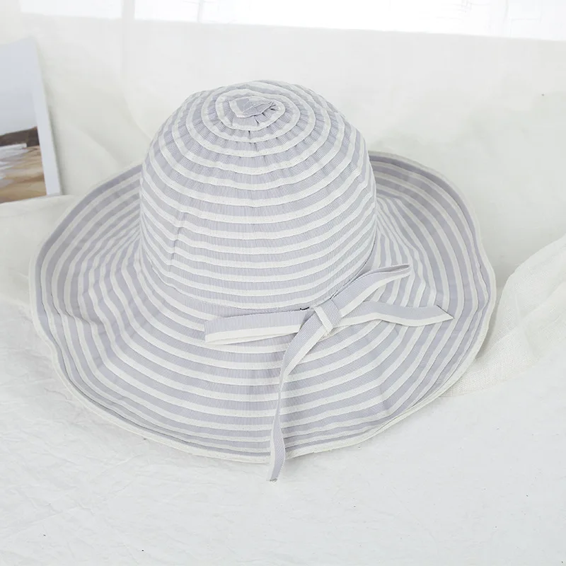 H7469 черно-белая полосатая Ткань банта Женская Солнцезащитная шляпа летний отдых Большие Полями солнцезащитная Кепка для девочек складной солнцезащитный козырек для бассейна s
