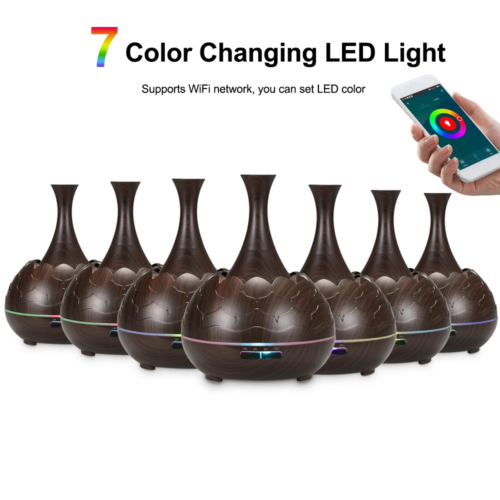 Особенности: * Пульт дистанционного управления:Поддерживает Wi-Fi сеть, вы можете установить светодиодный цвет (7 видов), интенсивность тумана и таймеры простым щелчком на вашем смартфоне, что делает вашу жизнь умнее. Это сделает ваш домашний запах хорошим и предотвратит сухую и потрескавшуюся кожу во время сухой погоды. * Голосовое управление и большая емкость:Он может достичь голосового управления, совместимого с Amazon Alexa/Echo, для Google Home, бесплатно, очень удобно. Большой резервуар для воды объемом 400 мл обеспечивает непрерывный туман до 12 часов. * Функция синхронизации:Вы можете настроить таймеры для включения/выключения вашего смарт-диффузора в определенное время каждый день или в определенные дни, которые вы выбираете. Подходит для вашей жизни и экономит на счетах за электричество. (Автоматическое выключение при исходе воды) * Супер испаритель:Создав частоты 360 °, которые мгновенно распыляют воду и молекулы эфирного масла в воздух. Гораздо здоровее, чем старомодные тепловые диффузоры, которые повредят эфирные масла во время нагрева. Без шума, не будет мешать вашей сладкой мечте. * Здоровый:Помещается дома, yoga, офиса, спа, спальни, детской комнаты, уменьшает запах сигарет, приготовления пищи и домашних животных. Наслаждайтесь естественным ароматом дома, сохраняйте здоровую влажность в помещении, простоту в эксплуатации, безопасность в использовании, легко улучшает качество вашего дома.