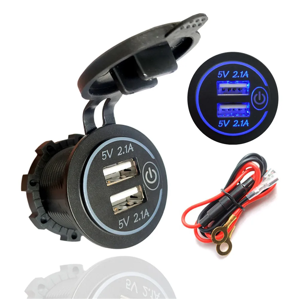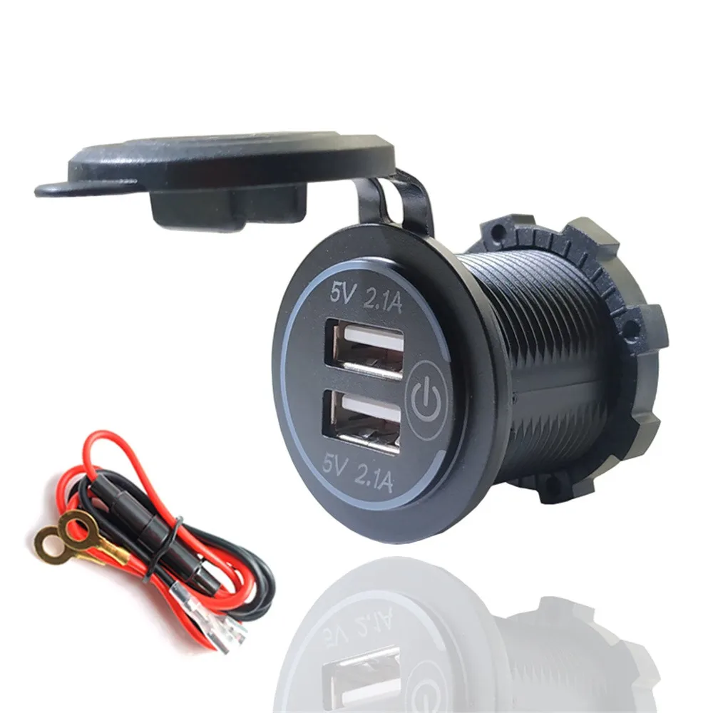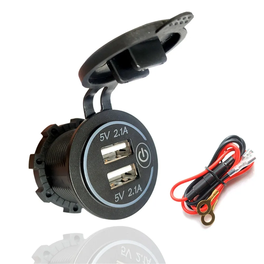 4.2A с двумя портами USB Розетка для автомобильного зарядного устройства с сенсорным переключателем для автомобилей, мотоциклов