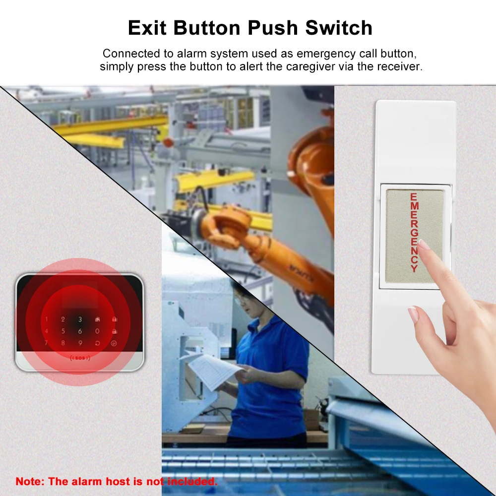 * Подключен к системе сигнализации, используемой в качестве кнопки экстренного вызова, просто нажмите кнопку, чтобы уведомить работника по уходу через приемник.