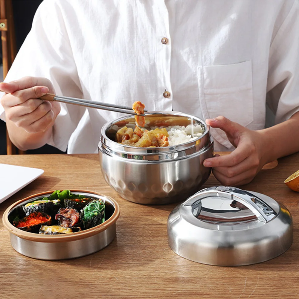 -Нержавеющая сталь двойной слой круглый термос Ланч-бокс контейнер для хранения еды.