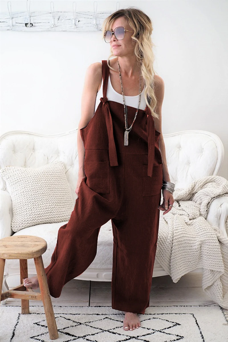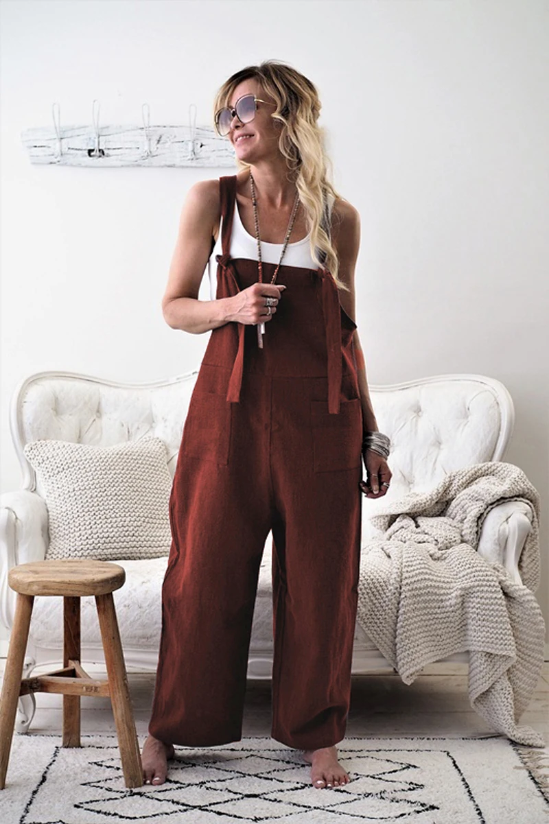 Новинка; Модные женские повседневные свободные льняные брюки; Комбинезон; Брюки!