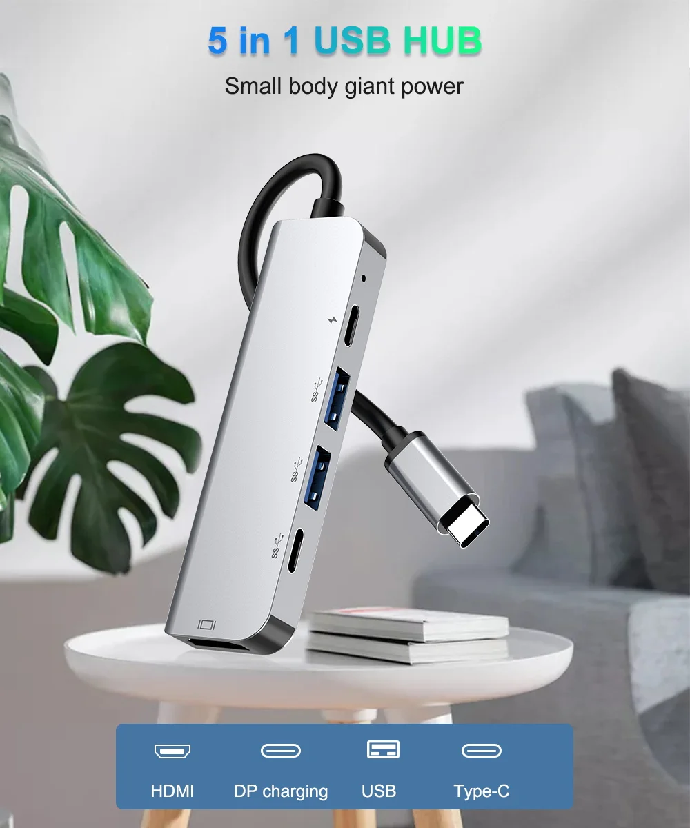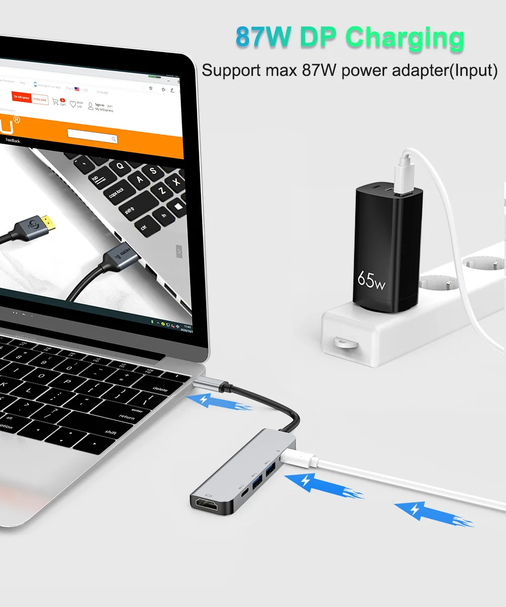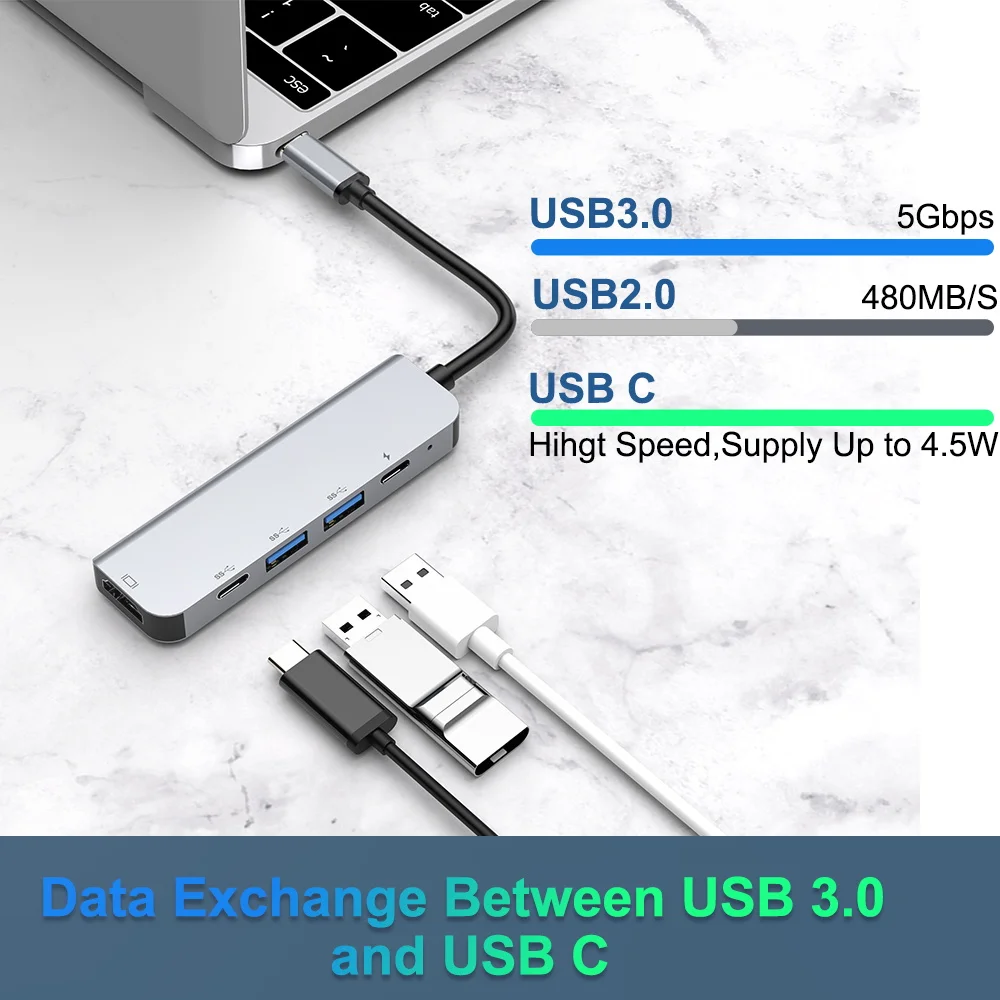5 в 1: HDMI (4K30Hz)+ PD источник питания (87W)+ USB3.0 * 2 + USB C