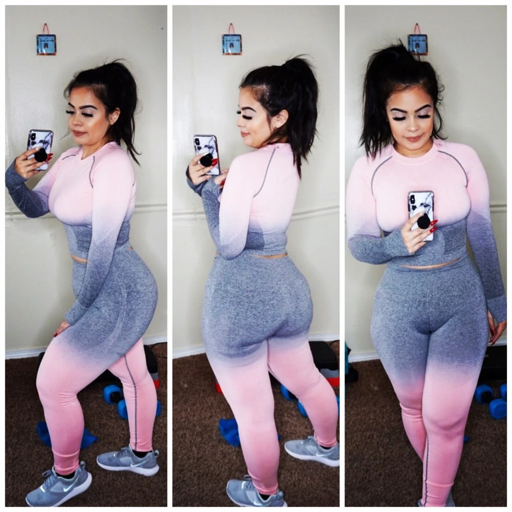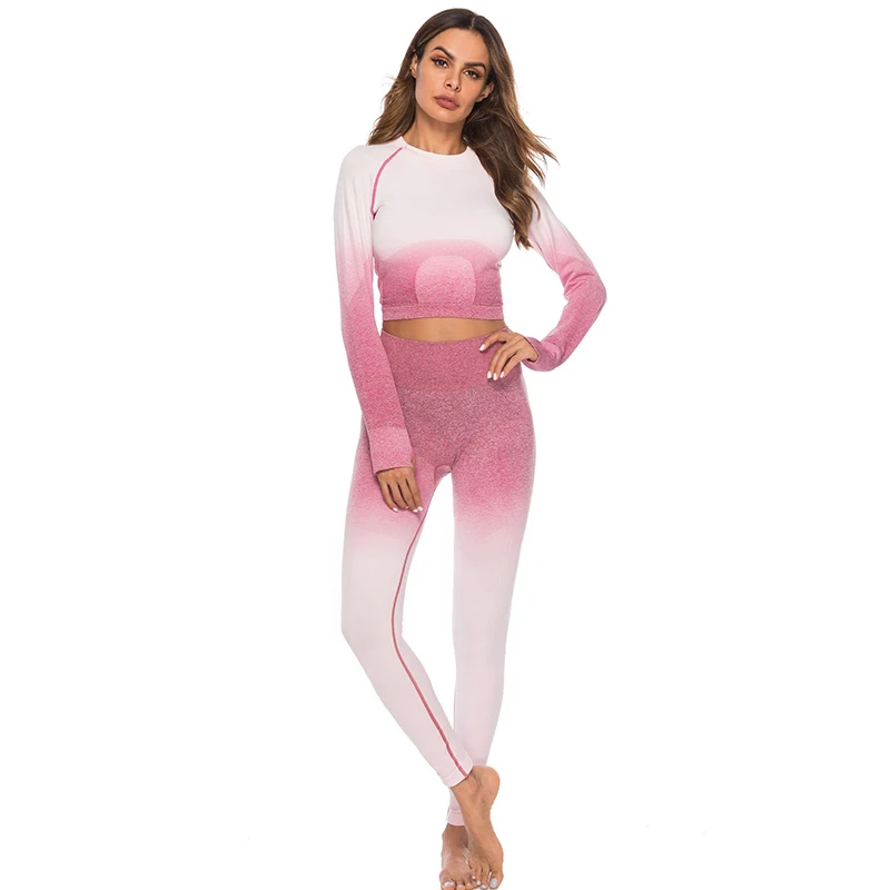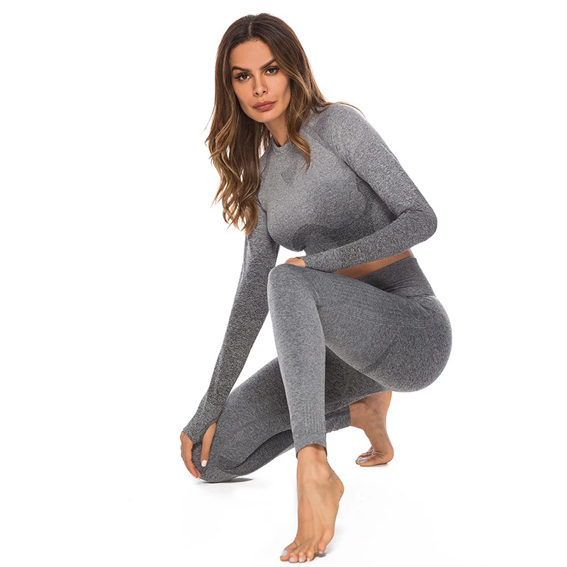 Комплект для йоги женский из 2 предметов, спортивная одежда для спортзала, бега, тренировок, Топ с длинным рукавом для фитнеса, бесшовные леггинсы, комплект для йоги
