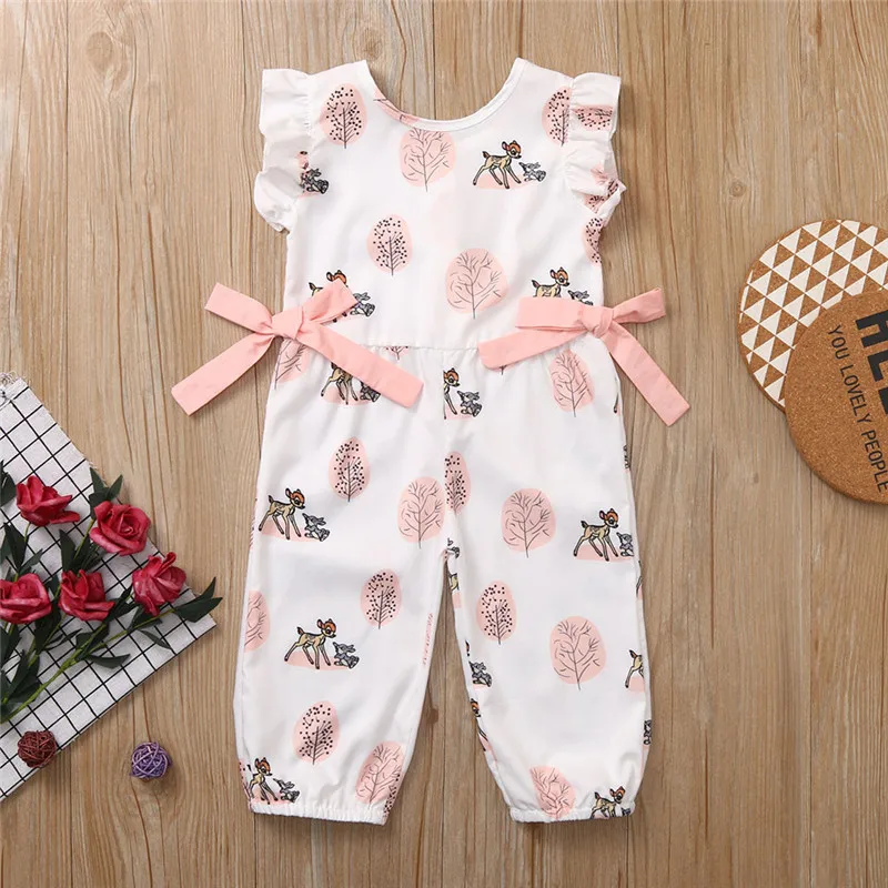 Милый комбинезон с бантом для маленьких девочек; Детский комбинезон с рисунком оленя; Комплекты одежды