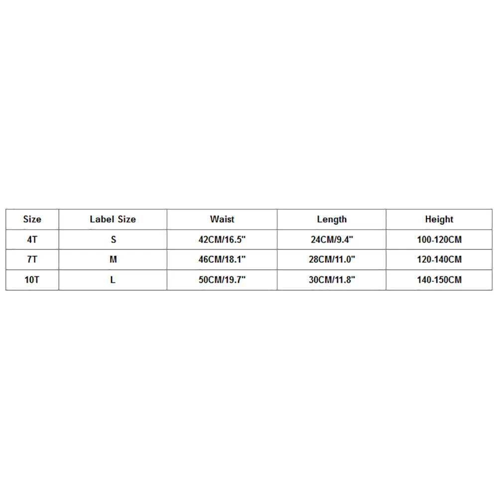 Размер Размер этикетки Талия Длина Высота 4Т S 42 см/16,5" 24 см/9,4" 100-120 см 7T М 46 см/18,1" 28 см/11,0" 120-140 см 10T L 50 см/19,7" 30 см/11,8" 140-150 см