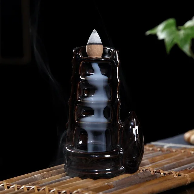 Керамический обратный поток благовоний горелка бамбуковые ароматические палочки ладана палочки держатель для гостиной, офиса, домашнего декора ладана база + 10 шт. Ладана Конусов
