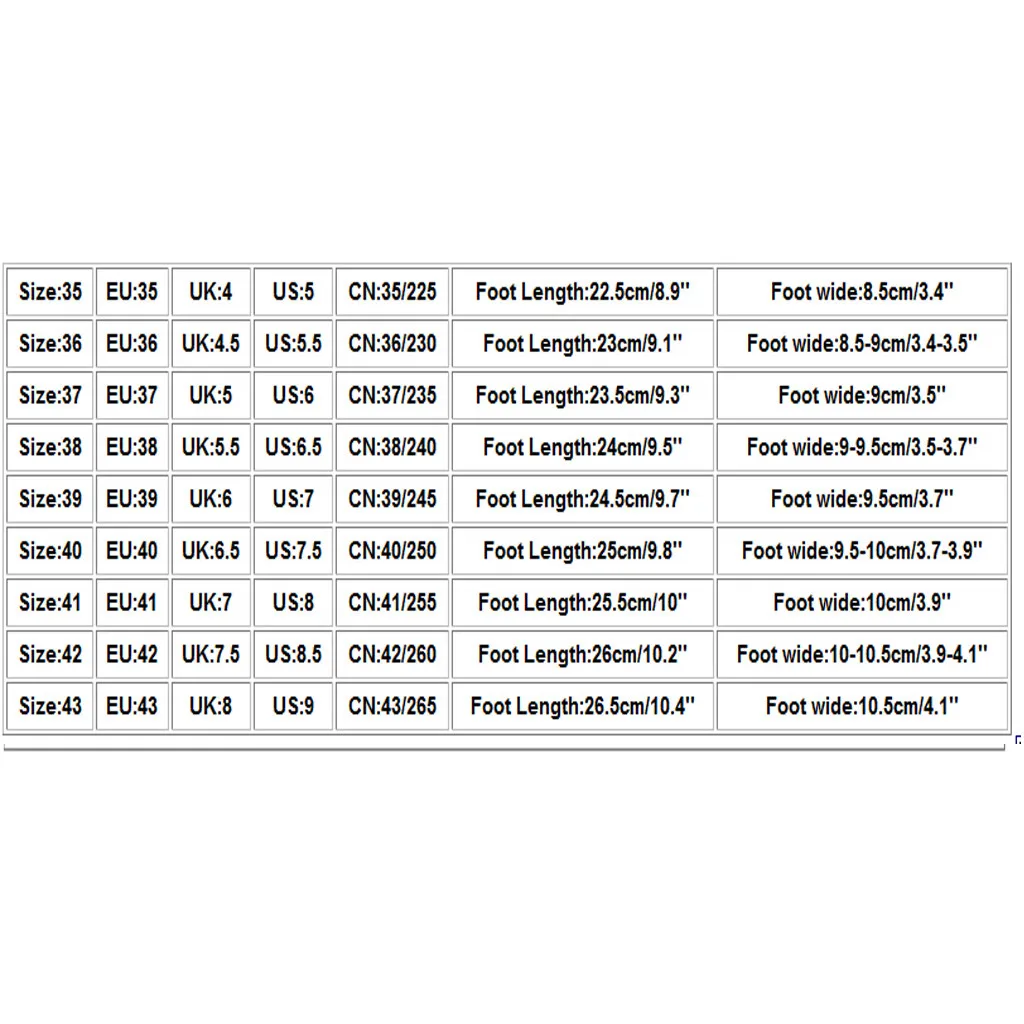 Полезные советы:Различные стили обуви, пожалуйста, выберите размер в соответствии с типом вашей стопы.