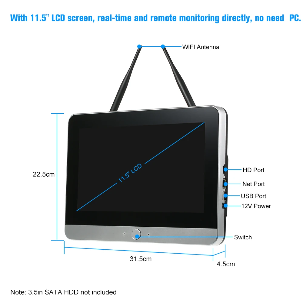 * С 11,5 ''ЖК-дисплей экран, в режиме реального времени и удаленного мониторинга напрямую, нет необходимости ПК.