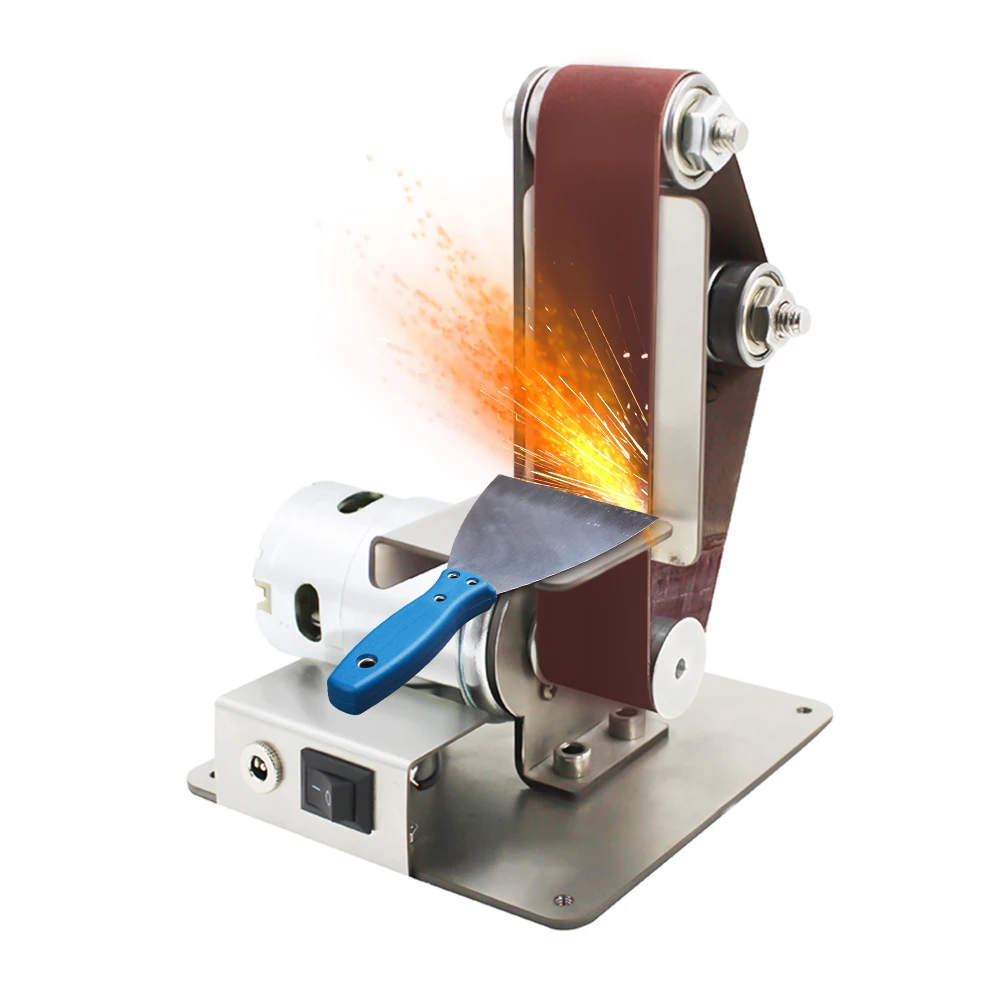 Это многофункциональный ленточный шлифовальный станок, мини портативный, низкий уровень шума, может использоваться для высокоскоростного стального сверла грубого шлифования, кромки лезвия, тонкого шлифования вольфрамовой стали токарного инструмента, полировки корень дерева Бодхи и т. Д., простой в установке и эксплуатации, это домашний инструмент DIY. Особенности: Изготовлен из высококачественного металла, не легко ржавеет, износостойкий, имеет длительный срок службы. Встроенный двойной подшипник, нескользящий и пылезащитный. Основание стабильное и прочное, может быть помещено на стол, что экономит труда. Конструкция эксцентрикового регулировочного колеса может регулировать вертикальность ремня. Колесо регулировки ремня имеет пружинную структуру для автоматической регулировки герметичности. Рабочий стол может свободно регулировать угол, а ведомое Регулировочное колесо добавляет слот, который может скользить вверх и вниз, не выскакивая вверх. Характеристики: Материал: алюминиевый сплав Цвет: серебристый Вилка: США Шпиндель: 775 /795/895 мотор шпинделя (опционально)