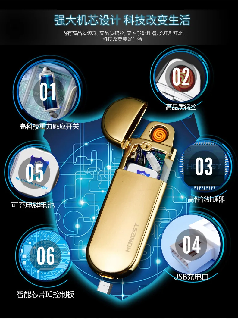 Технические характеристики изделия Название: электронная USB Зажигалка Особенности: с защитой от ветра, двойной плазменной резки, Перезаряжаемые, встряхните, Размеры: 70*27*5 мм посылка Вес: 60 г Применение: инструментов для курения