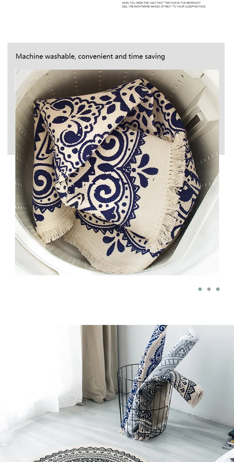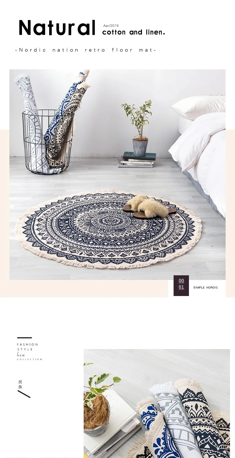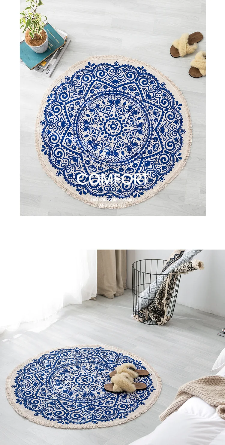 Круглый ковер в богемном стиле с изображением мандалы для гостиной, спальни, хлопковый круглый ковер