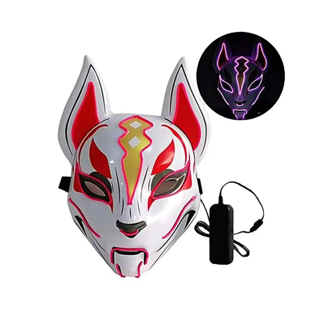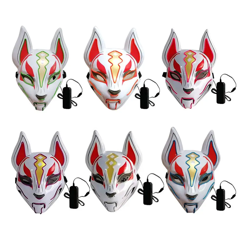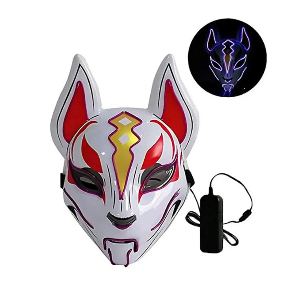 Маска лисы ручная раскрашенная маска полное лицо ПВХ маска лисы освещение маскарадный фестиваль мяч Кабуки кицунэ маски косплей костюм