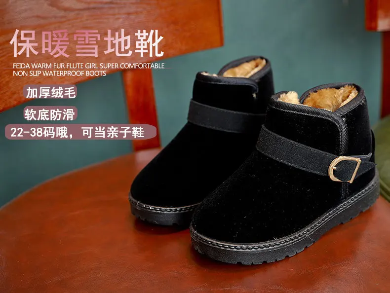 Детские зимние ботинки для мальчиков и девочек, 2019 г. Новая зимняя однотонная теплая хлопковая обувь на толстой подошве зимние сапоги детские хлопковые сапоги