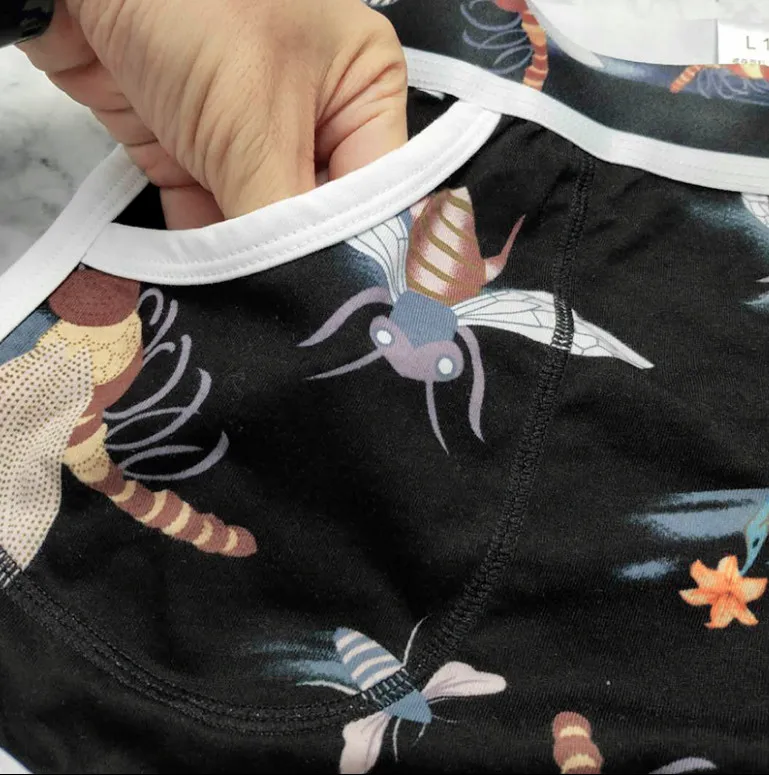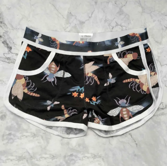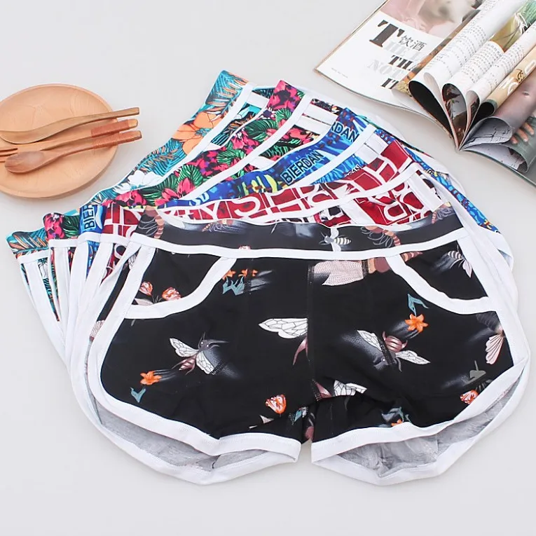 И это более подробные фотографии оЦветные принтованные не выцветающие мужские шорты, независимое нижнее белье с мешочком, мужское хлопковое свободное нижнее белье с четырьмя краями.