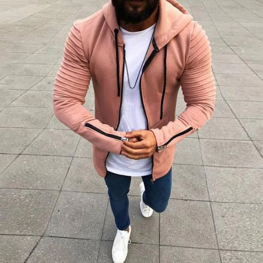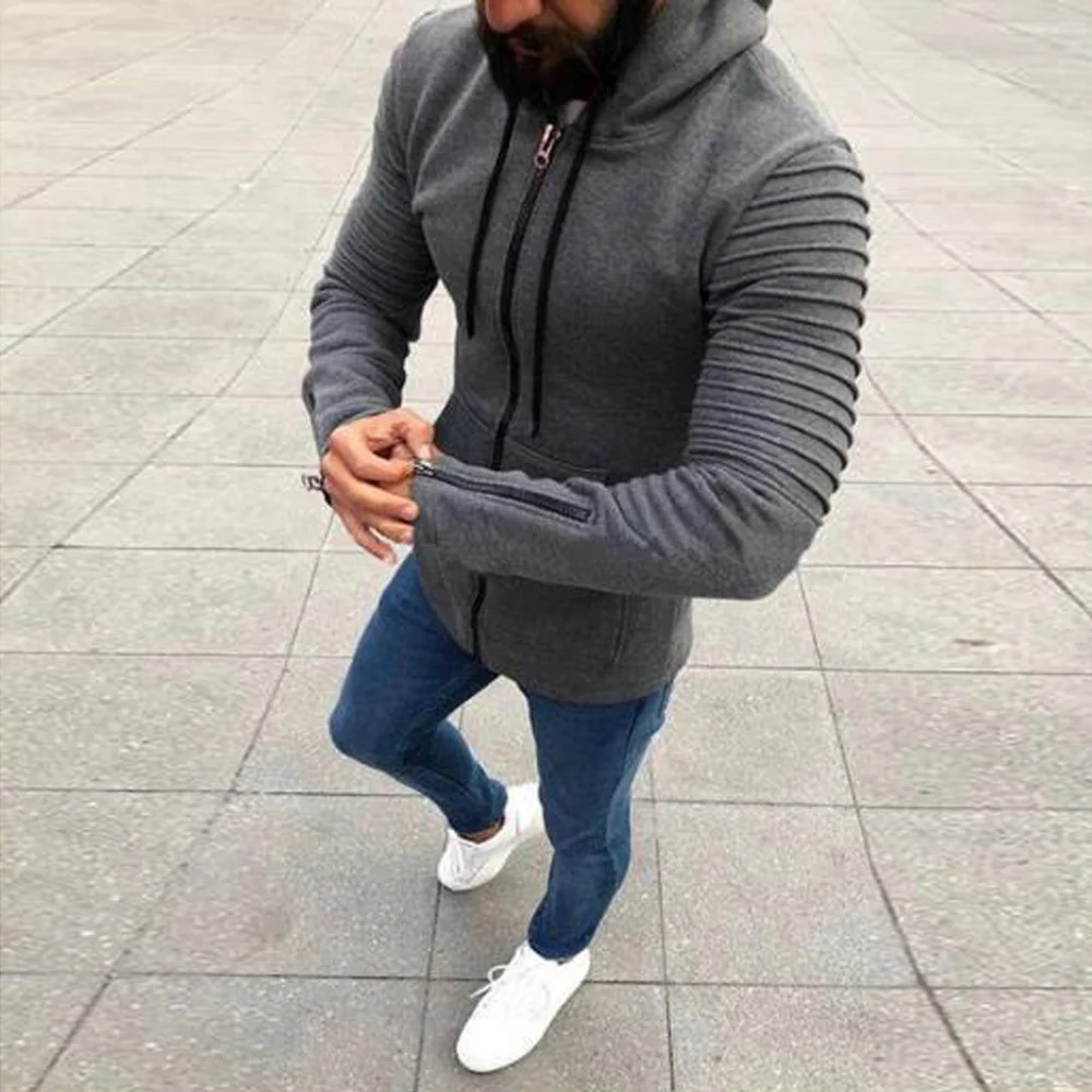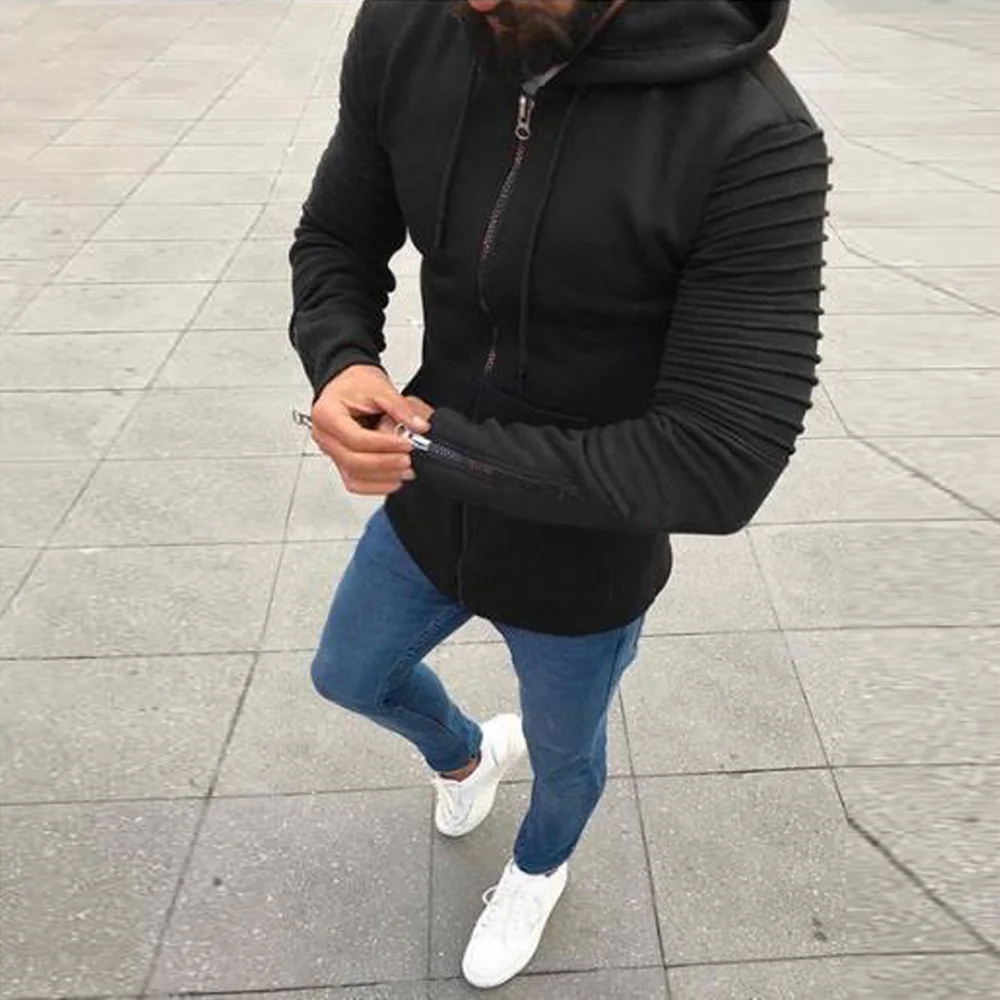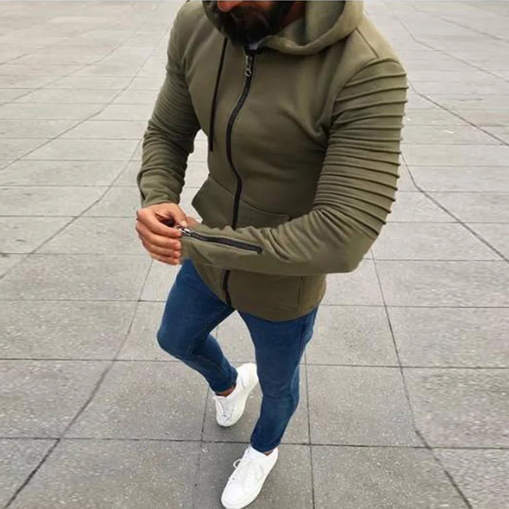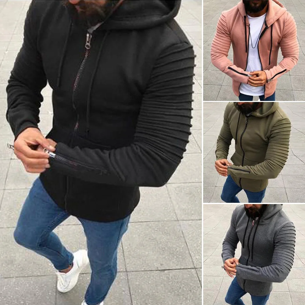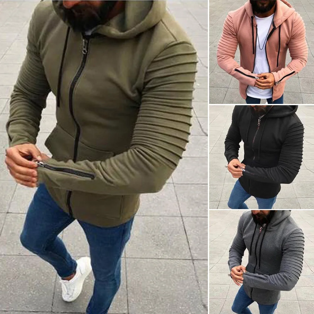 * Описание товара: мужские, спортивные, повседневные, плиссированные, с длинными рукавами, с капюшоном на молнии, модные, трендовые, пальто