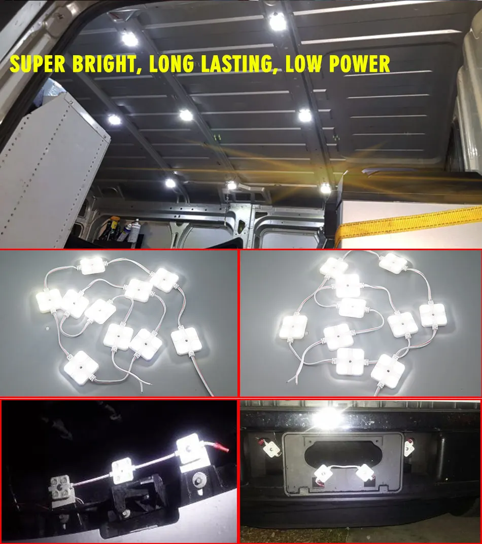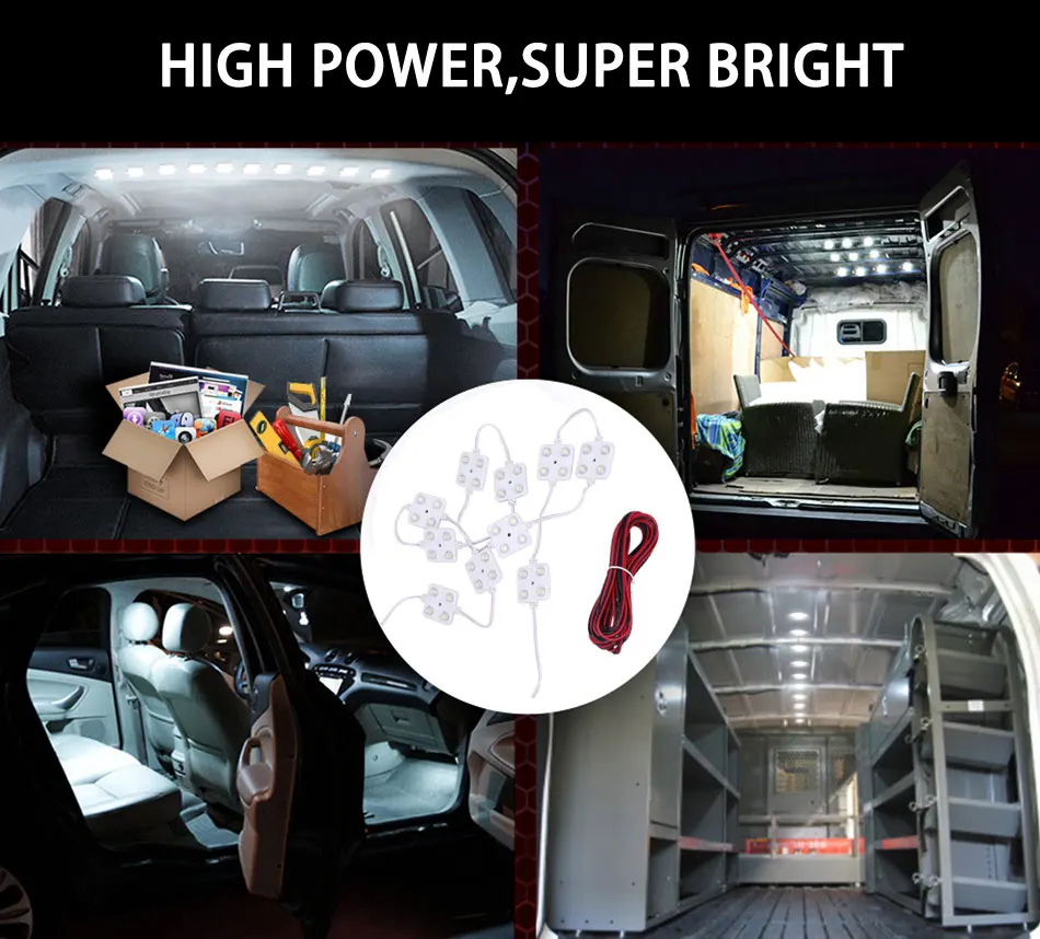 Особенности: Этот набор включает в себя 10 светодиодный модули с общим объемом мембранного указателся 40 светодиодный s. Супер яркий, отлично подходит для рабочего освещения, или найти что-то быстро и безопасно. Длительный срок службы, низкая мощность, полное освещение во всем вашем автомобиле. С наклейкой на спине, вы можете легко установить их в любом месте, где вы хотите. Широкий спектр применения. Подходит для фургонов/лодок/караванов/прицепов/грузовых автомобилей/HGV/лошадиных коробок/лапы машины и т. Д. Технические характеристики: Напряжение: 12 V Светодиодный Количество: 40 Свет Цвет: белый Размер: 38x38 мм (LxW) (один светодиодный модуль) 10 Светодиодный модуль Общая длина: 1,4 м Длина проводки: 5 м Посылка Размеры: 17*15*3 см/6,7*6 * 1.2in Вес упаковки: 202 г/7,1 унций Посылка список: 1 * Подсветка для салона автомобиля комплект лампы