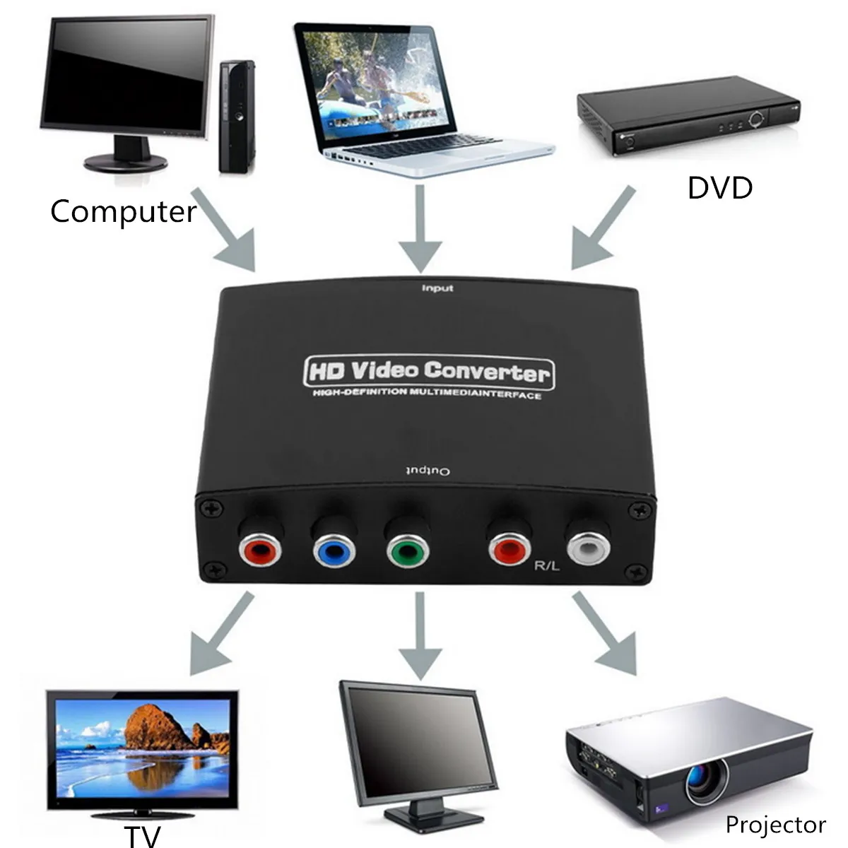 HDMI в YPBPR HD видео конвертер 1080P HDMI в RGB компонент 5 RCA YPbPr видео + R/L аудио конвертер адаптер ТВ ПК