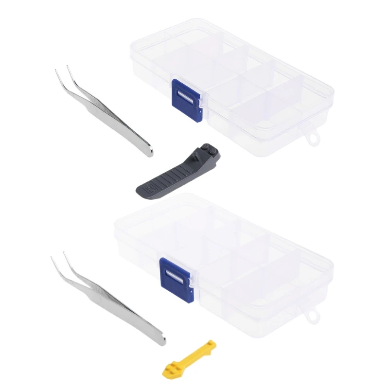 4 шт. в комплекте: 1x10 ящик для хранения в сетке, 1 x пинцет с острым носком, 1 x открывалка для блоков.