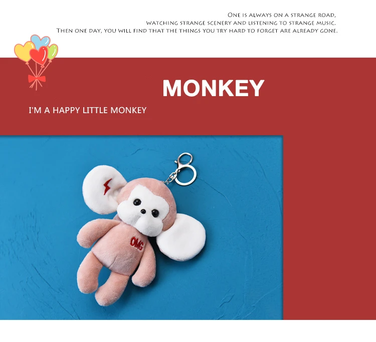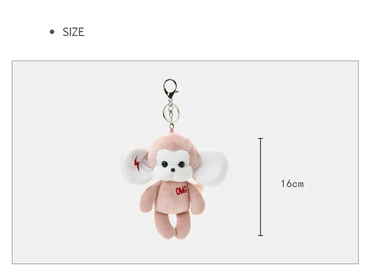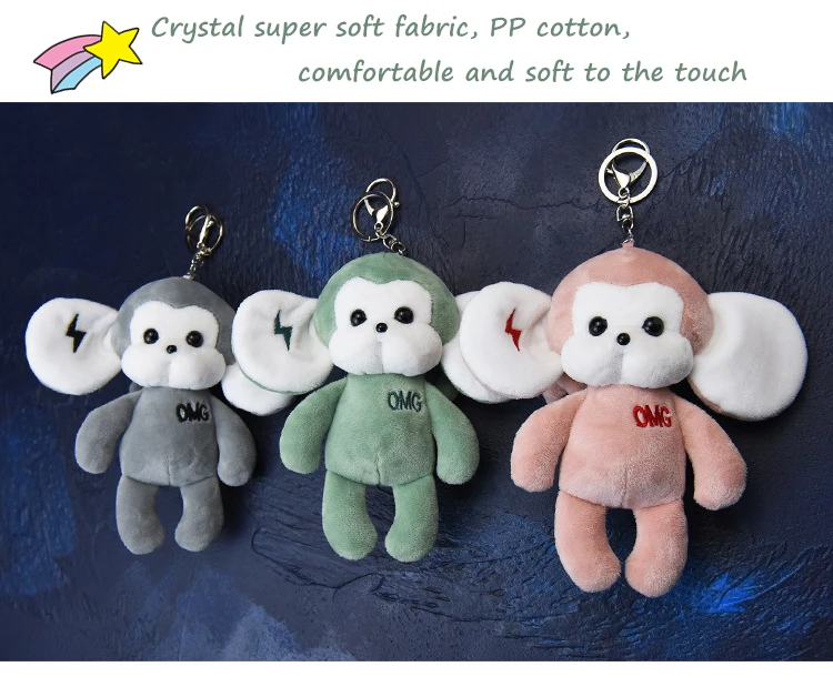 100% абсолютно новый Наименование товара: плюшевая подвеска с большим ушком обезьяны Материал изделия: очень мягкая ткань с кристаллами Размеры: 16 см Наполнитель: хлопок PP Предупреждение: Держите его в чистоте Примечания: 1. Ручное измерение, погрешность в 1-3 см, это нормальная ситуация, надеемся на понимание 2. В связи с разной конфигурацией разных мониторов изображение не отображает фактический цвет товара.Обслуживание клиентов: