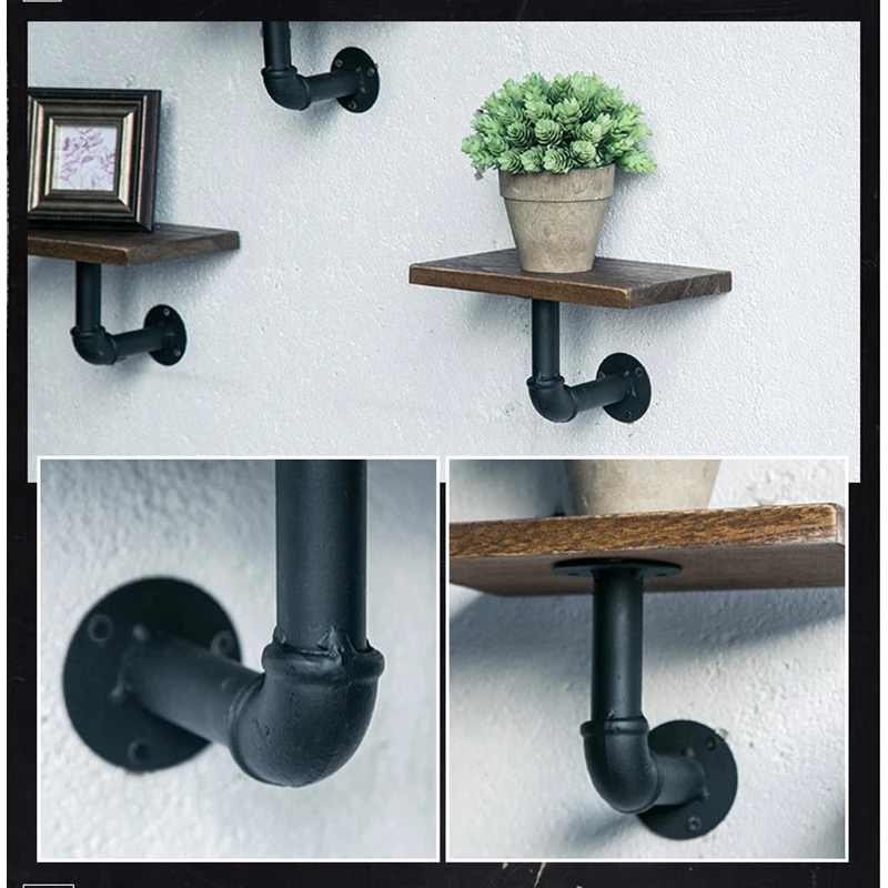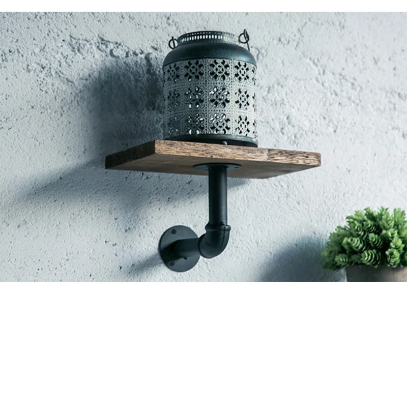 Европейская ретро настенная деревянная полка, держатель для железной трубы, плавающая книжная полка для хранения, подвесная домашняя гостиная, ресторан, спальня
