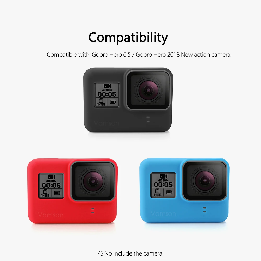Материал: Силикон Цвет: черный/красный/синий (по умолчанию черный, если вы хотите другой цвет, пожалуйста, оставьте сообщение, спасибо) Совместимость с: спортивная камера Gopro Hero 7 6 5 и Gopro hero 2018 Новинка комплектация: силиконовый чехол 1,1x2,1 x силиконовый чехол + 1 Ремешок на руку (черный)