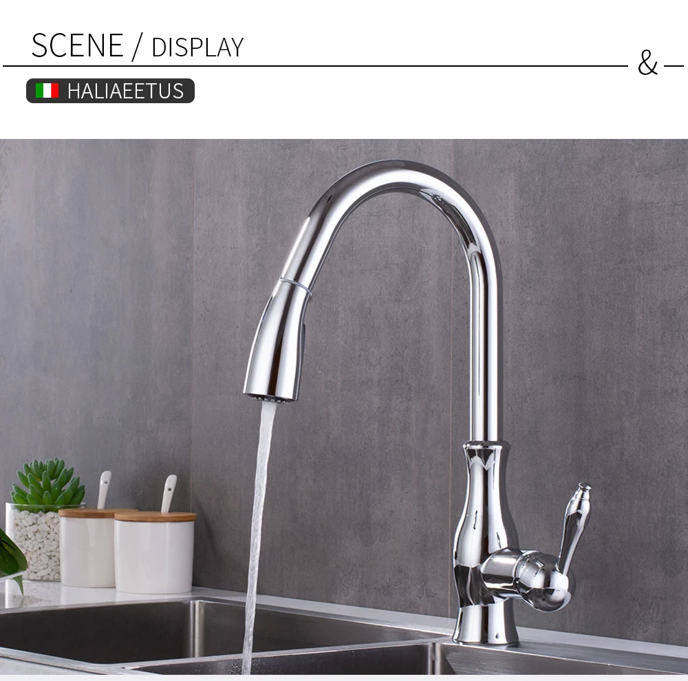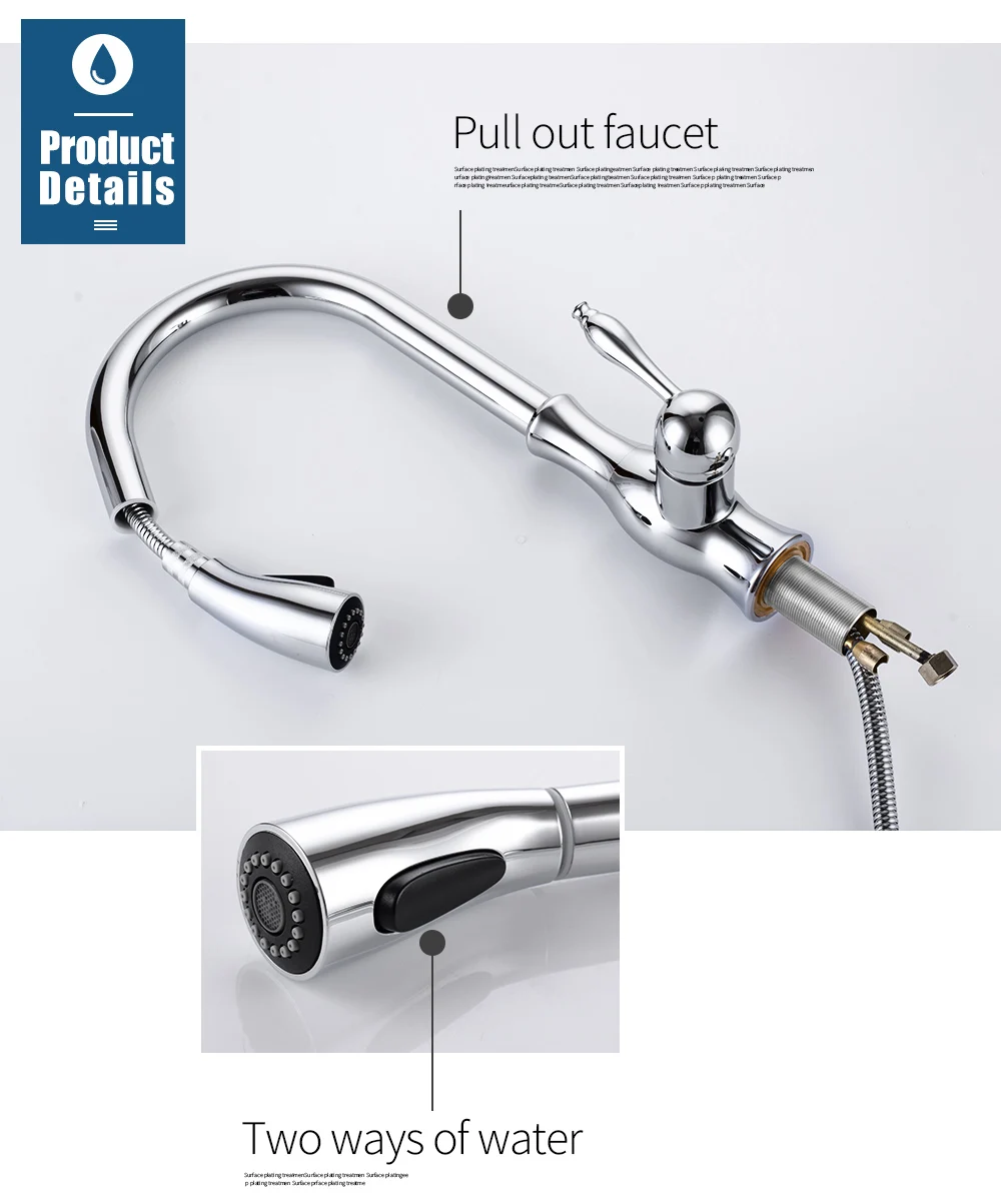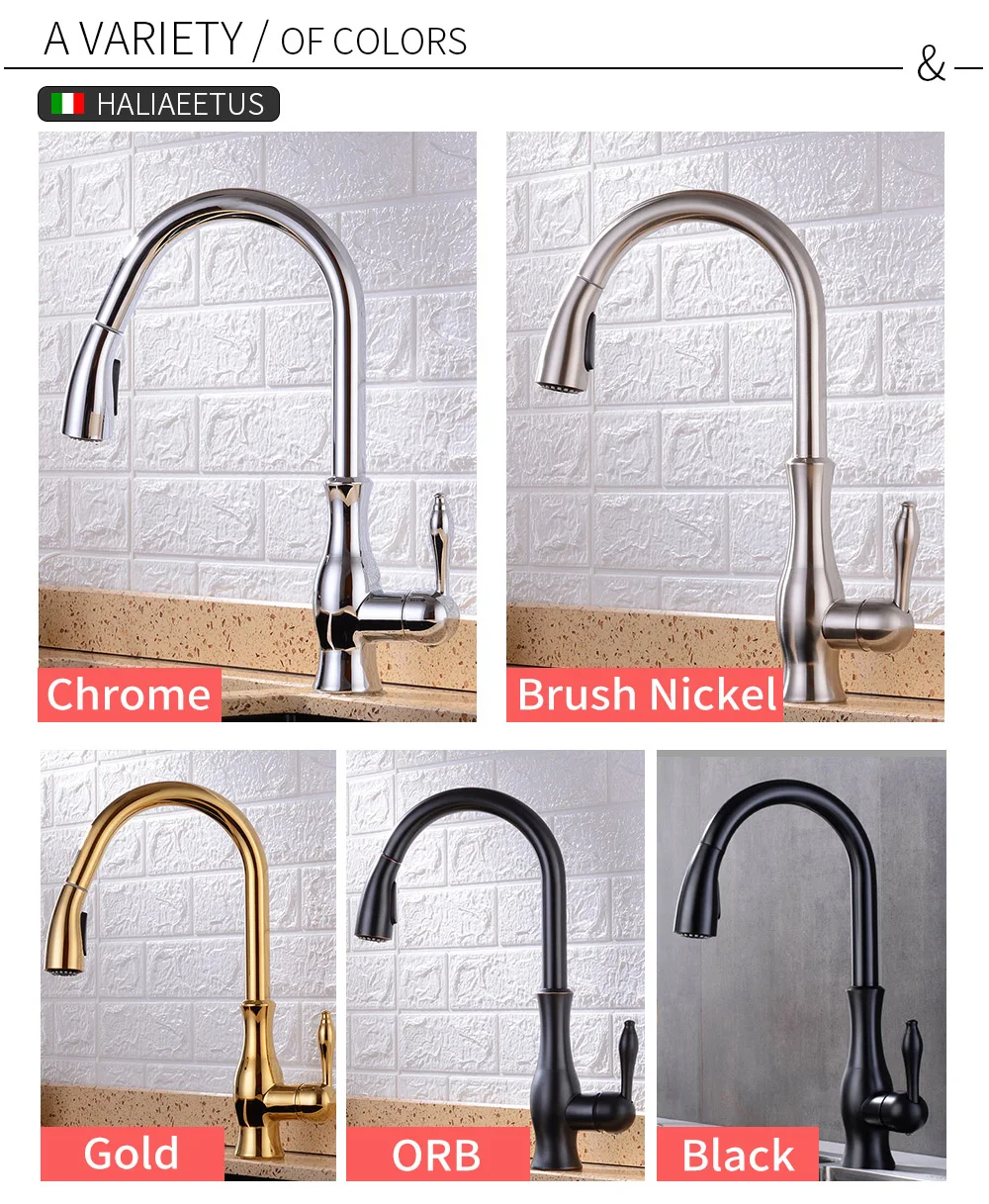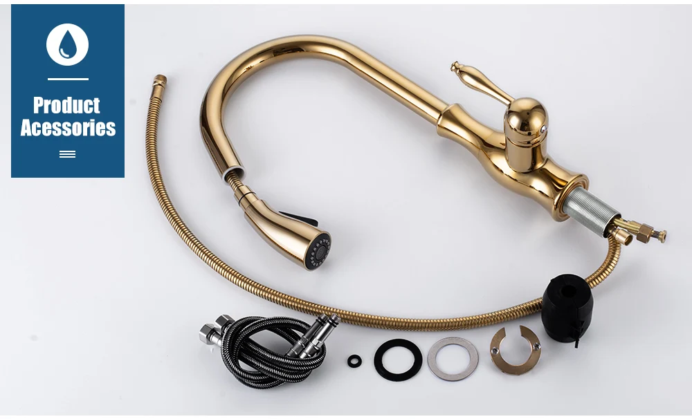 О сопла: Латунная насадка, две функции Вытяните распылитель, aeratedstream и мощный промывочный спрей для очистки, может вытянуть до 40 см, aility для точного возврата.