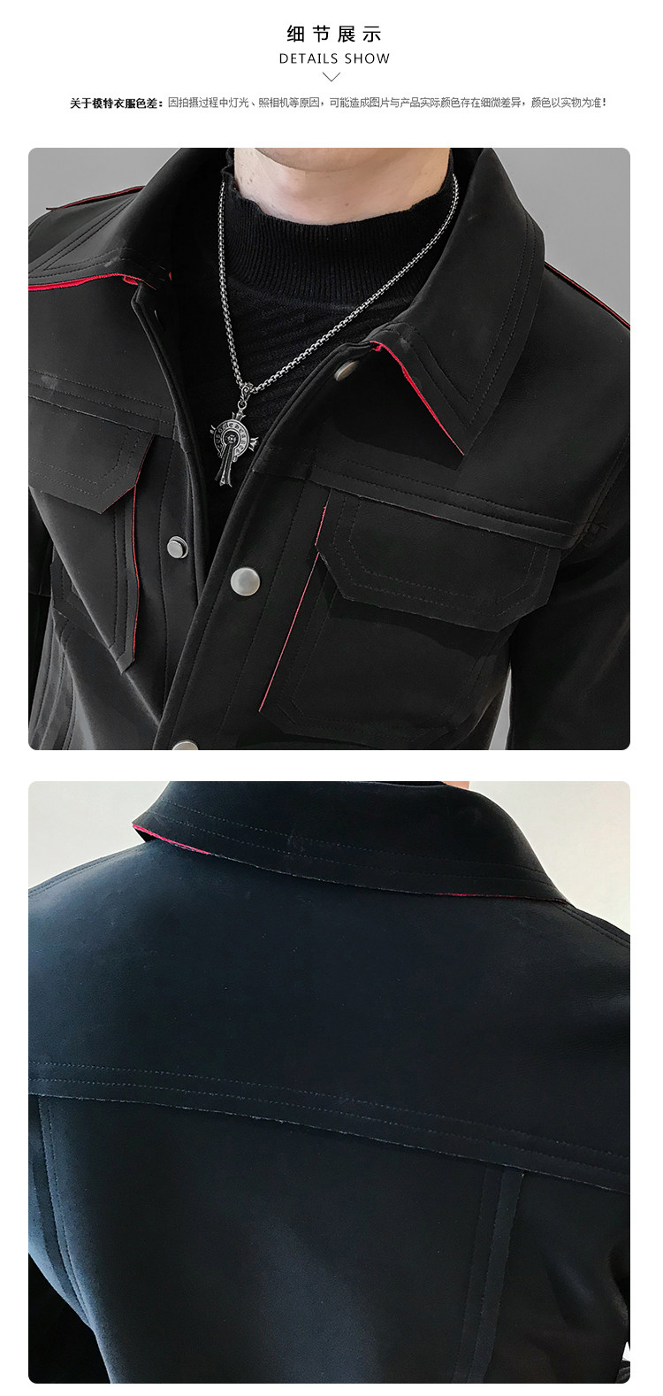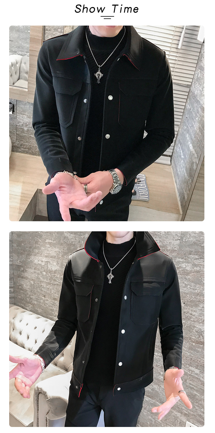 2018 осень и зима диагональная молния кожаная мужская...