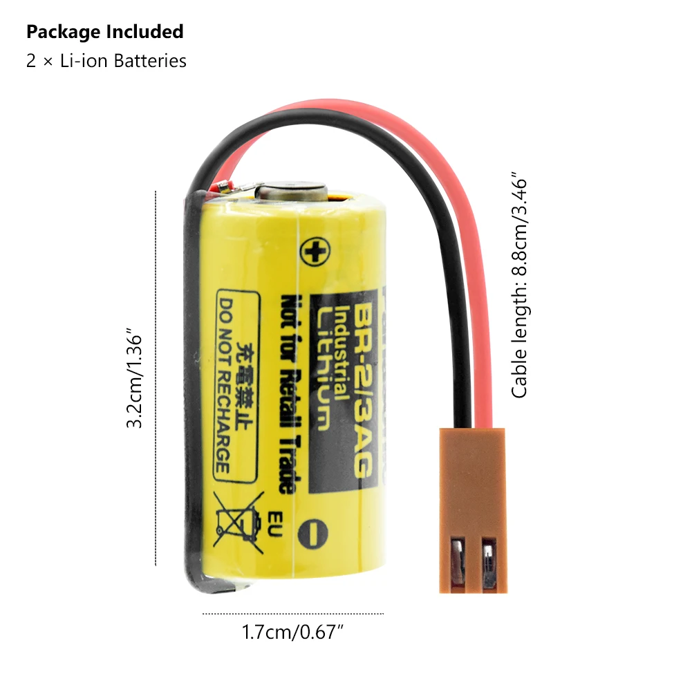 Особенности 100% Фирменная Новинка! Безопасная и экологичная неперезаряжаемая литиевая батарея BR-2/3A с разъемом, протестированная под строгими стандартами контроля качества, без утечки. Литий-ионный аккумулятор высокой плотности энергии, длительный срок службы, стабильный разряд и высокий ток. Встроенная схема безопасности, защита от короткого замыкания и перегрузки по току, помогает продлить срок службы аккумулятора. Зеленые энергетические батареи, они предварительно заряжены и готовы к использованию. Премиум батареи, широко используются для станков с ЧПУ, сервера, программиста, ПЛК, литья под давлением, печатная машина, экран, амперметр, счетчик воды, часы в реальном времени, Резервная мощность памяти, все виды измерительных приборов, специальное электронное оборудование и т. Д. Технические характеристики
