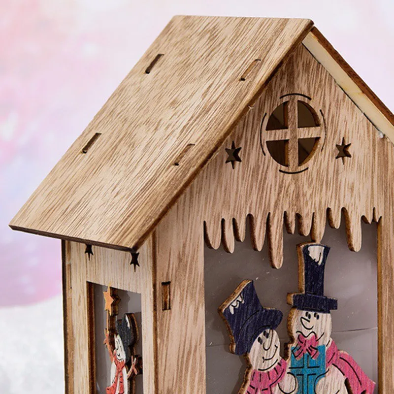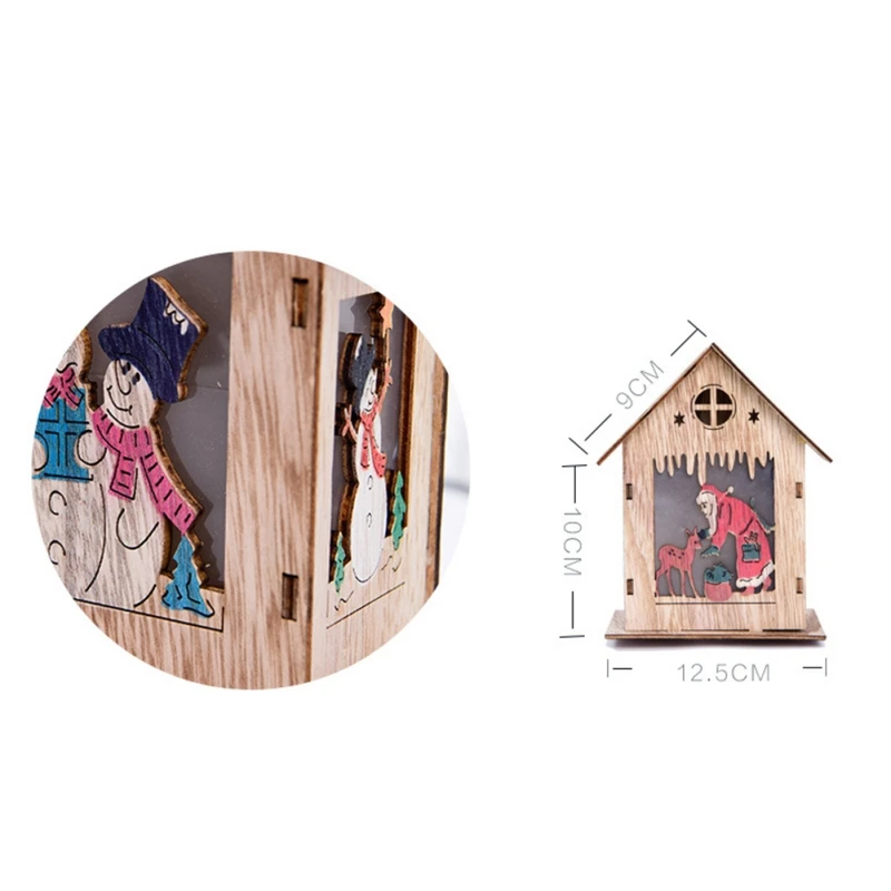1. Изготовлен из дерева и долговечен. 2. Дизайн Светодиодный светильник более уникален, что делает его новым высоким светильник украшения. 3. Экологически чистый, это как настоящий маленький деревянный дом. 4. С подвесным канатом вы можете повесить его там, где вы хотите его повесить. 5. Подходит для украшения рождественской елки, вечерние рождественские украшения и другие реквизиты. 6. Примечание: включает батарею кнопки.