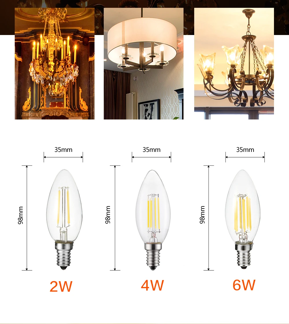 E14 Светодиодная лампа свеча светильник 2 Вт 4 Вт 6 Вт 220 в 240 в 110 В E12 C35 винтажная лампа накаливания Эдисона с регулируемой яркостью Светодиодная лампа для люстры светильник ing Бесплатная доставка