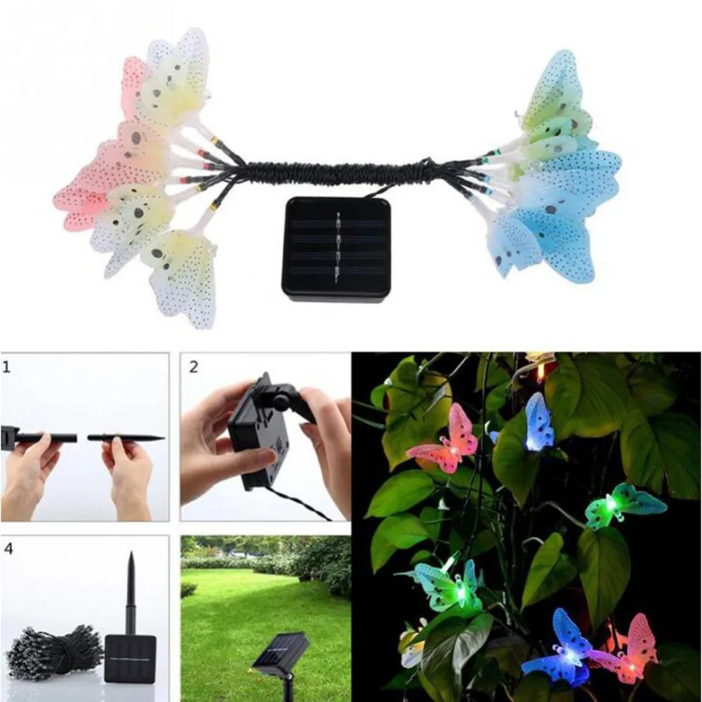 12 шт. светодиодная Солнечная бабочка волоконно-оптическая сказочная гирлянда, уличные солнечные садовые огни для рождества, праздника, свадебного украшения