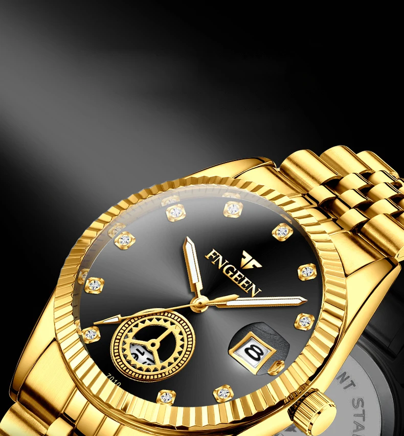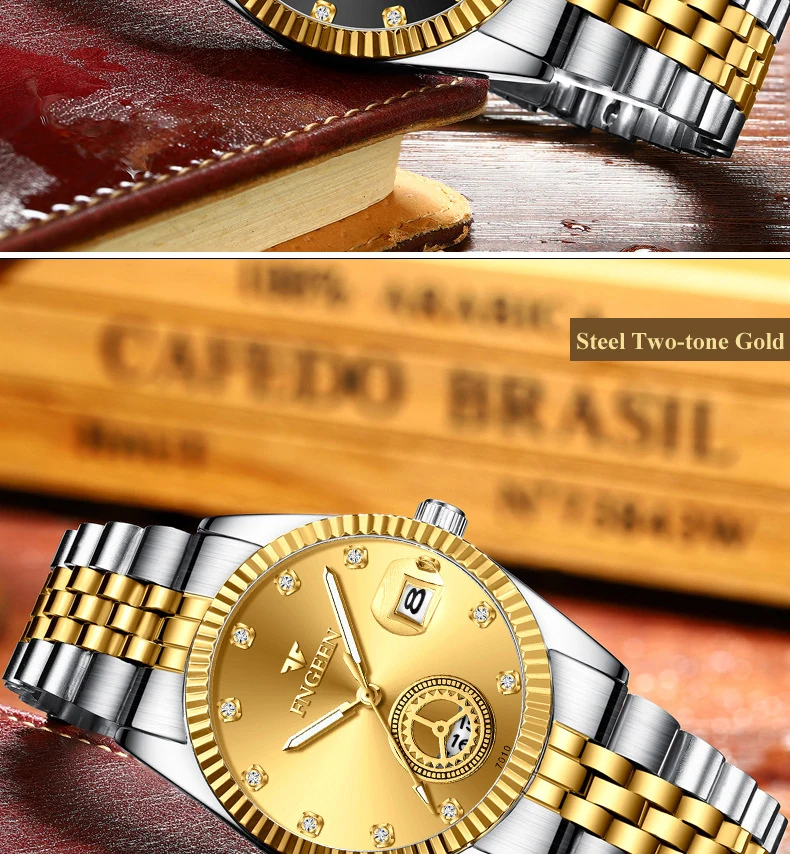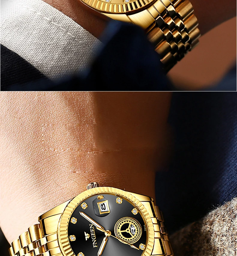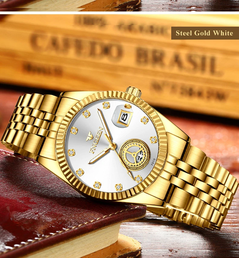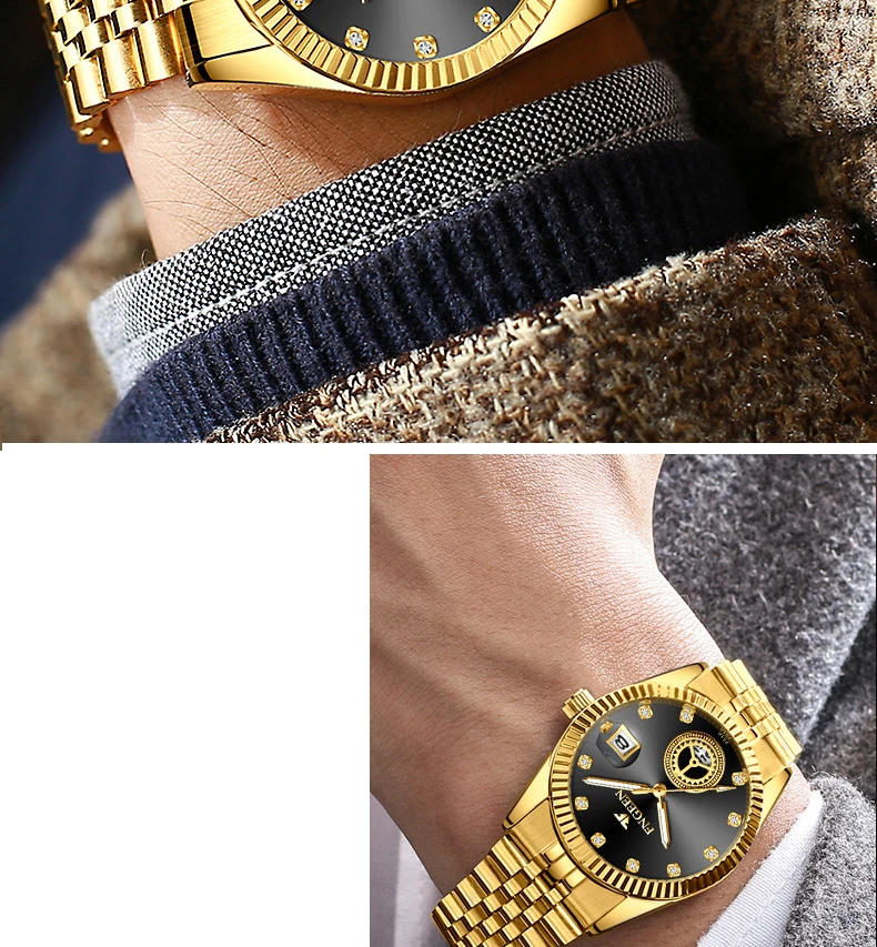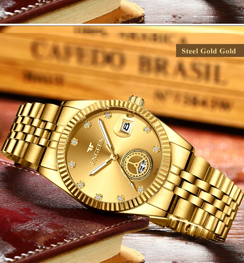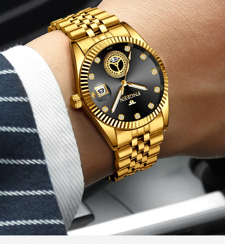 Часы мужские кварцевые, водонепроницаемые до 30 м, с датой, золотые, 2020