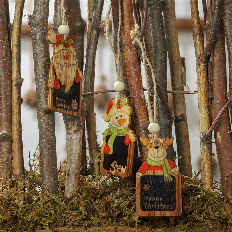 Рождественская Новогодняя Рождественская деревянная мини доска кулон цветной DIY рождественская елка кулон мультфильм Санта Клаус Снеговик очарование BZ073