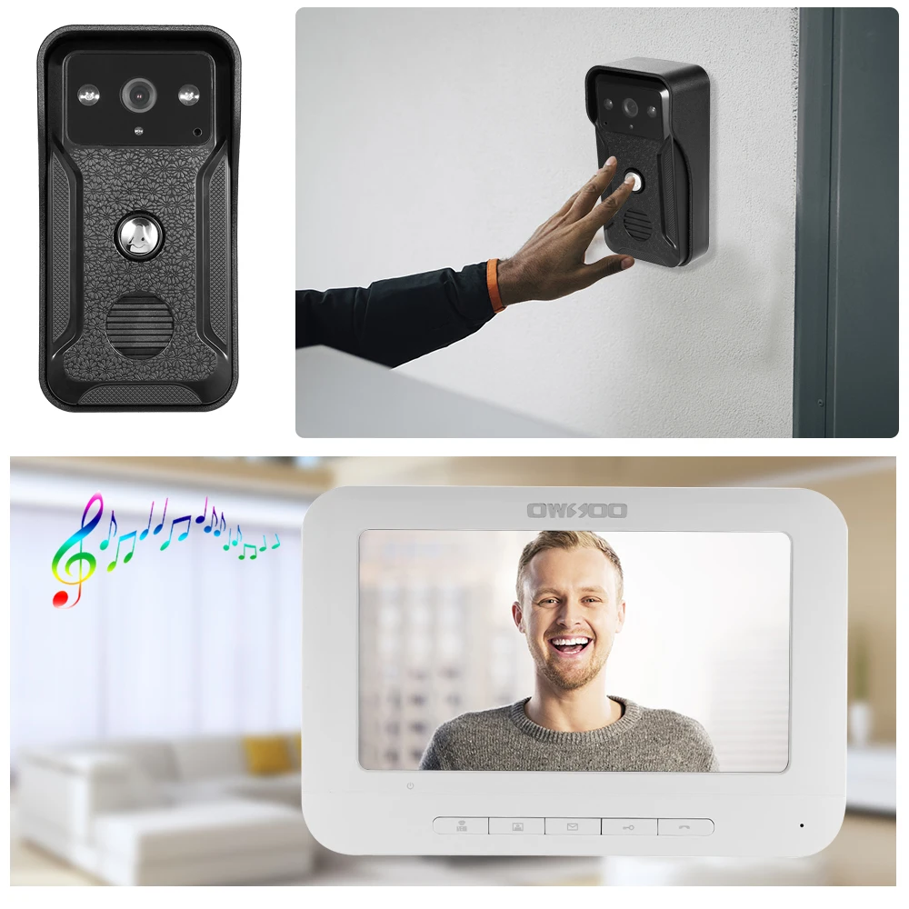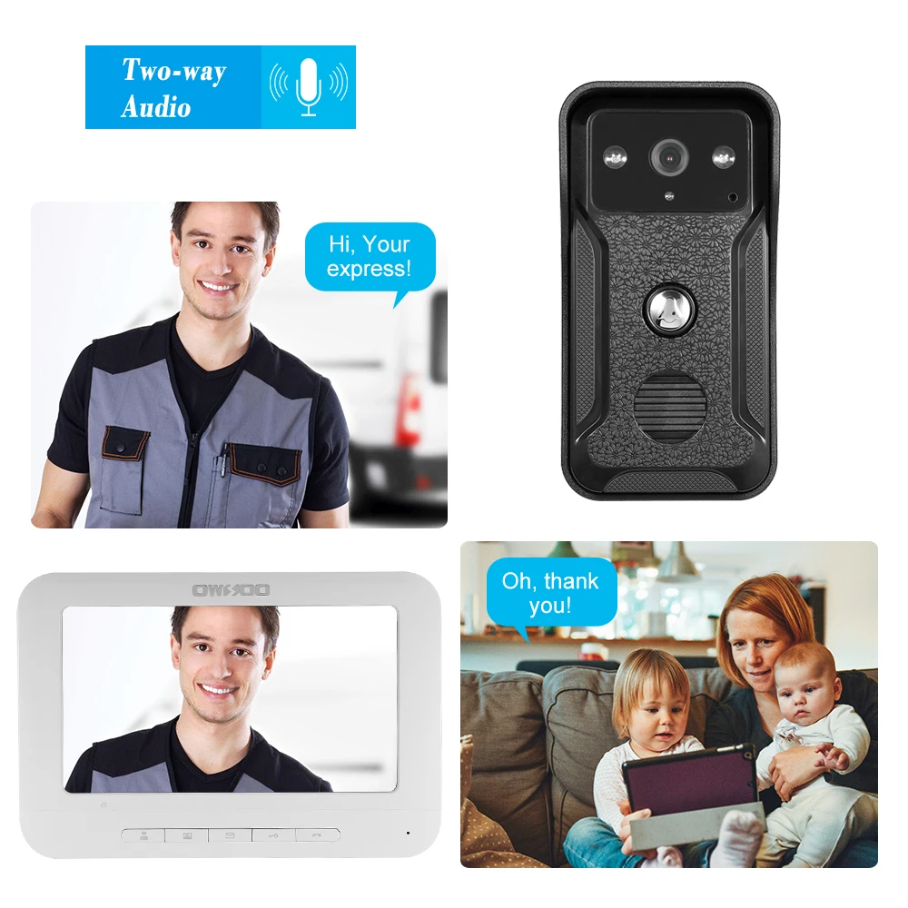 Это 7 дюймов Цвет ЖК-дисплей видео-телефон двери включает в себя один на открытом воздухе камера с водонепроницаемой функцией и один внутренний монитор. Он поддерживает наблюдение в режиме реального времени, визуальный домофон, удаленную разблокировку, инфракрасное ночное видение и непромокаемую функцию. Вы можете следить за тем, что произошло перед вашей дверью с помощью внутреннего монитора. Он предоставляет вам четкие изображения для мониторинга как днем, так и ночью из-за ИК-светодиодов. Он широко используется в квартирах, домах, гостиницах, офисах, общественных зданиях, виллах, фабриках и т. д.
