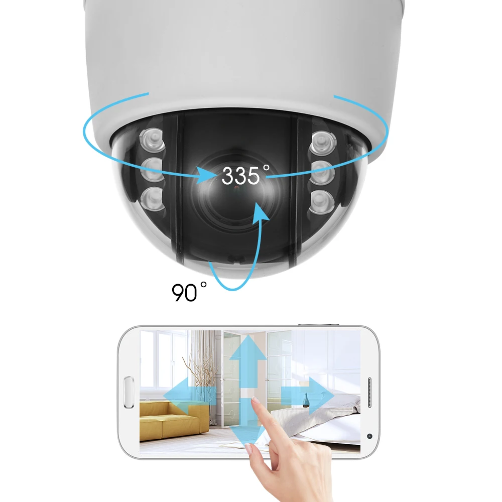 *Pan tilt rotation, horizon: 0~355°, vertical: 0~90°, no blind spot.