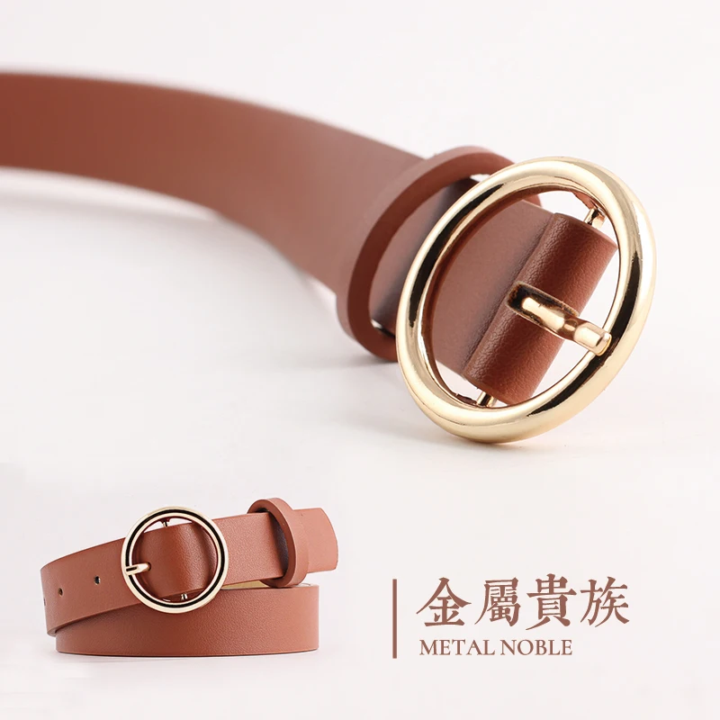 Женский ремень с пряжкой на боку с золотыми пряжками для женщин, модные студенческие простые новые круглые ремни с пряжками