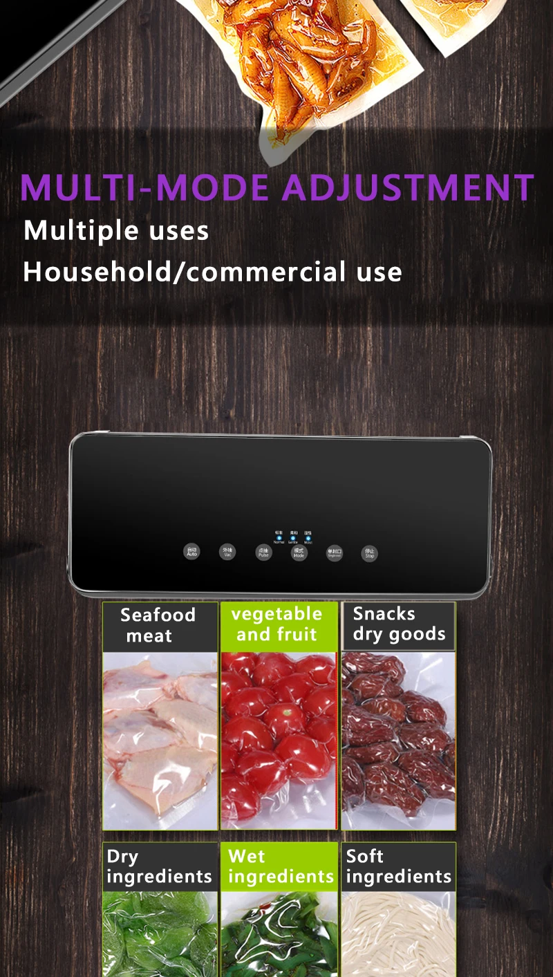 YAJIAO упаковочная машина разработана с полностью автоматической вакуумной герметизацией, мягкими сенсорными цифровыми кнопками, светодиодный индикатор, электрическая вилка и центр управления, расположенный на верхней панели, обеспечивает удобный опыт работы