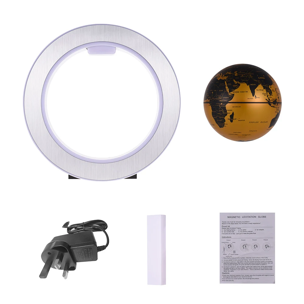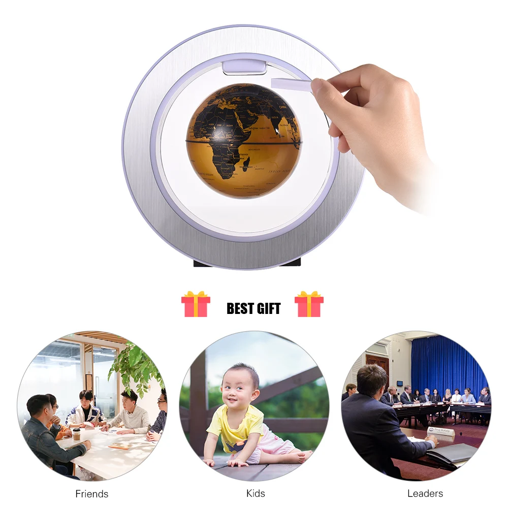 Прекрасный дизайн:Глобус может плавать и вращаться в середине воздуха внутри основания, также он автоматически притягивается всасыванием между Электромагнитом и глобусом, чтобы избежать падения при случайном касании или отключении питания.