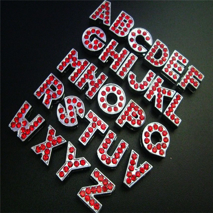 20 шт., A-Z, Красный Кристалл, буквы, горка, амулеты, стразы, алфавит, слайдер, подходит для 8 мм, кожаный браслет, брелок для телефона