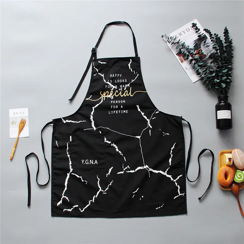 INS нордический хлопковый фартук, Черный Белый Мраморный фартук для приготовления пищи для мужчин и женщин с большим карманом, комбинезон, кухонные аксессуары для выпечки25