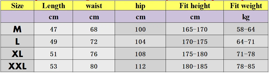 Ручное измерение, из-за различных индивидуальных методов, погрешность 1-3 см является нормальной, а не проблемой качества. Примечание: размер в нашем магазине для Азии, он на 1-3 см меньше, чем Европейский/американский размер, мы предлагаем приобрести на 1-3 см больше, чем обычно. Если вы не уверены в размере, пожалуйста, сообщите нам свой вес и информацию о талии и т. д. Чтобы мы помогли вам выбрать правильный размер.