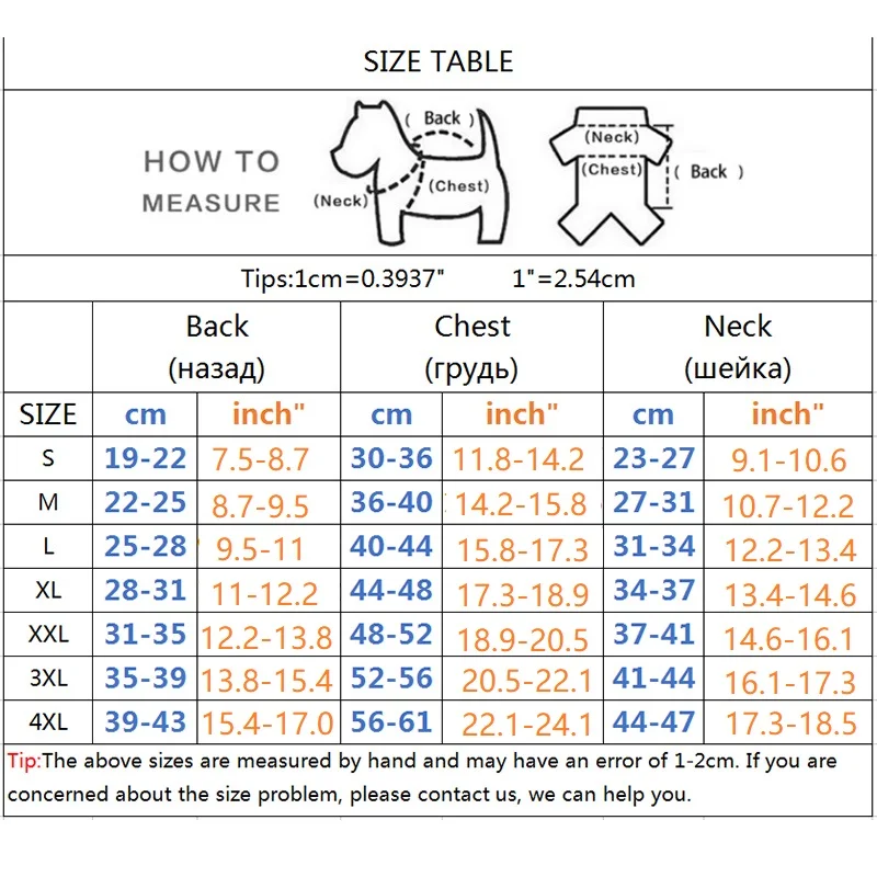 Примечание: Размер измеряется вручную. Может быть погрешность в 1-2 см. Если вы не согласны, пожалуйста, свяжитесь с нами, мы можем помочь вам выбрать лучший размер для вашего питомца. Продукты независимо от породы собак и пола. NOTIC Для 2 ног одежда на основе одного размера груди Для 4 ног одежда на основе размера длины Длина не включает хвосты