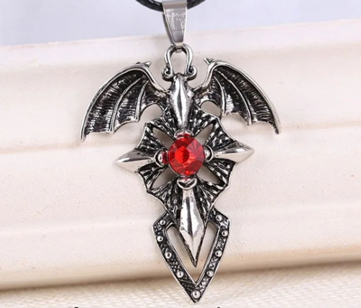 Креативное дизайнерское ожерелье с подвеской «летучая мышь», с красным кристаллом и двойными крыльями, Очаровательное ожерелье, мужское религиозное ожерелье, ювелирные изделия, 2019