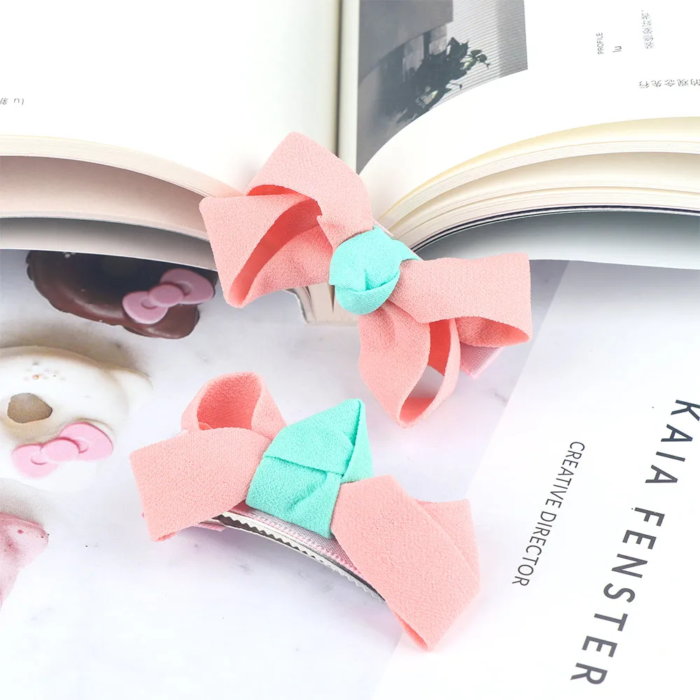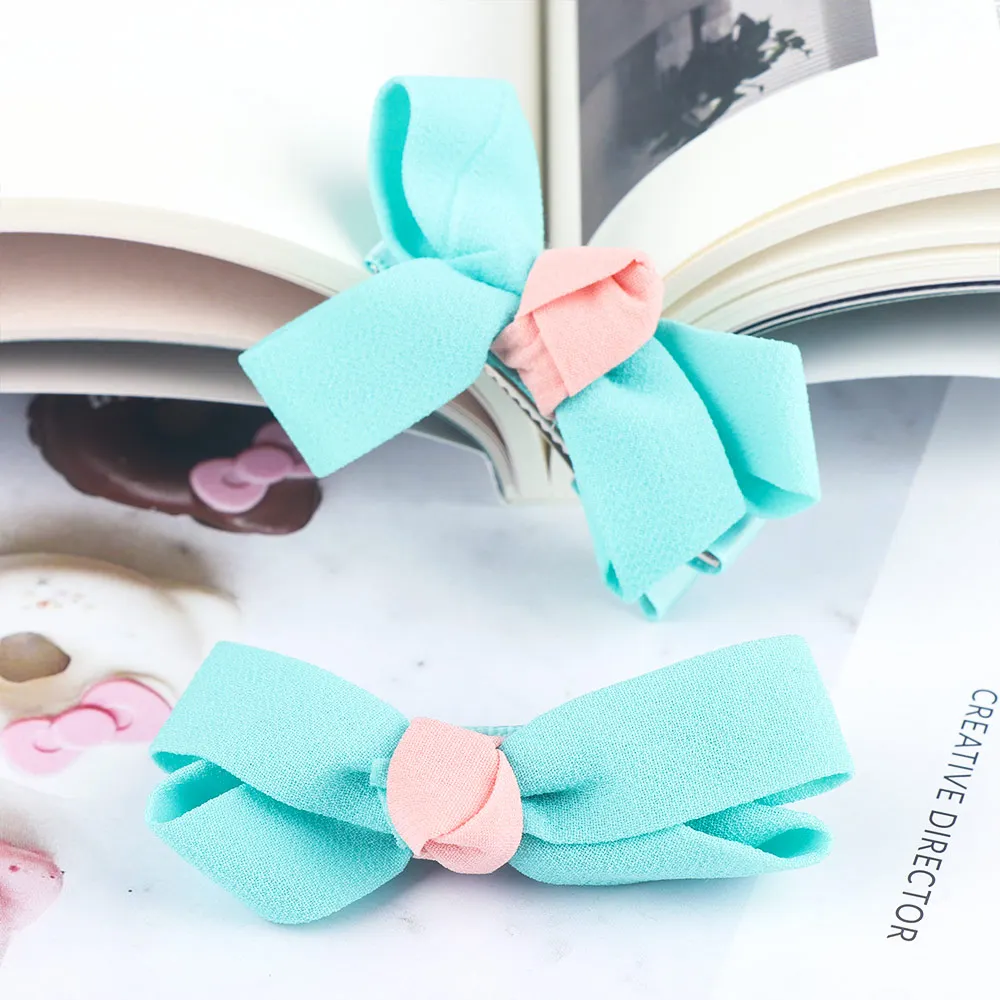 100% Фирменная Новинка Материал: шифон Тип: зажим для волос Цвет: розовый, синий, серый, желтый, розовый, красный Комплектация: 2x заколки для волос